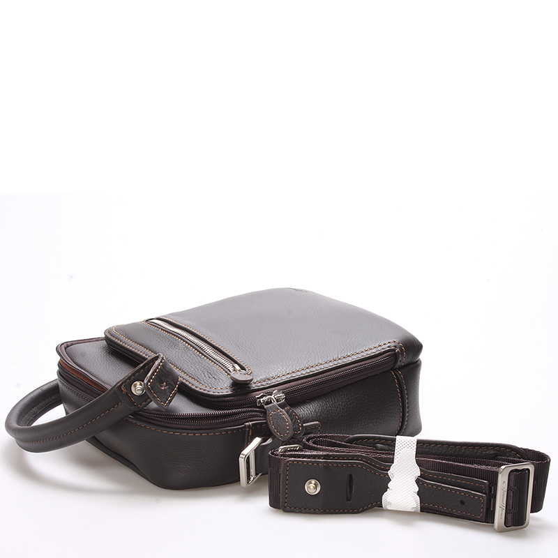 Pokud hledáte volnočasovou pánskou kabelku, která bude působit stylově, sáhněte po modelu Patrick. Jedná se o tradiční tašku přes rameno s popruhem crossbody, který je nastavitelný. Kabelku navíc můžete vzít v případě potřeby i do ruky. Do tašky se vám vejdou veškeré nezbytnosti. Díky mnoha kapsám budete mít ve svém zavazadle neustále pořádek. Unikátní hnědá barva dodá vašemu outfitu šťávu. Výrobním materiálem je hovězí kůže, která je doplněna stříbrným kováním.