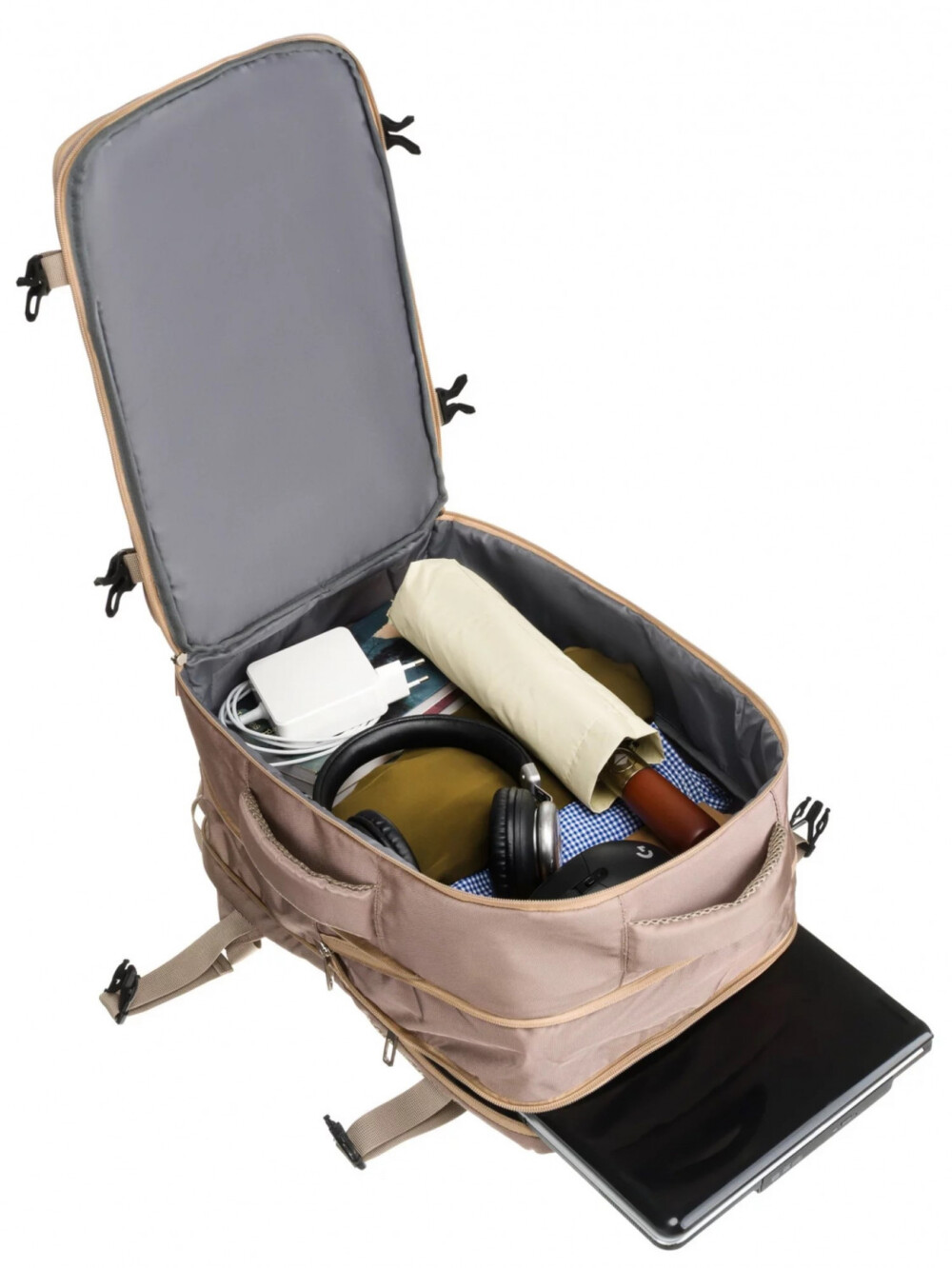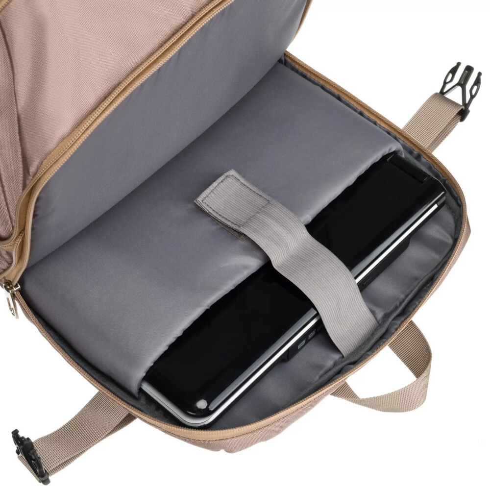 Textilní batoh působí prakticky a moderně. V zadní části má velkou zipovou kapsu, kam se vejdou všechny potřebné věci jako oblečení, dokumenty i školní pomůcky. V přední části se nacházejí další dvě kapsy, z nichž jedna je speciálně určená pro notebook. Přední stranu zdobí decentní logo značky a svislá zipová kapsa pro drobnosti. Batoh má pevné ucho v horní části a na boku, takže ho lze nosit i jako tašku. Záda i ramenní popruhy jsou vypolstrované pro pohodlné nošení, popruhy jsou navíc nastavitelné. Celkový vzhled doplňuje stříbrné kování. Objednejte ještě dnes a vyzkoušejte, vrátit jej můžete až do 30 dnů!