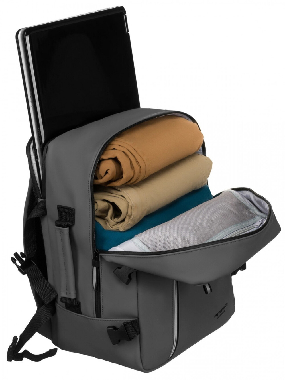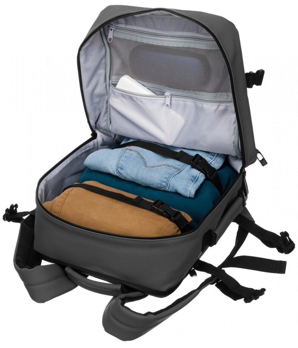 Textilní batoh z nepromokavé textilie je praktickým a stylovým doplňkem pro každodenní použití. Hlavní kapsa je uzavíratelná na zip a nabízí dostatek prostoru pro všechny potřebné věci. Uvnitř se nacházejí i praktické síťové kapsy na zip pro drobnosti a popruhy pro zajištění například oblečení. V zadní části je samostatná zipová kapsa určená na notebook. Záda i ramenní popruhy jsou vypolstrované pro maximální pohodlí při nošení, na zadní straně navíc nechybí další zipová kapsa. Batoh má pevné ucho v horní i boční části, díky čemuž se dá snadno přenášet i jako taška. Přední stranu zdobí svislá zipová kapsa přes celý batoh a decentní logo značky, které dotváří jeho moderní vzhled. Objednejte ještě dnes a vyzkoušejte, vrátit jej můžete až do 30 dnů!