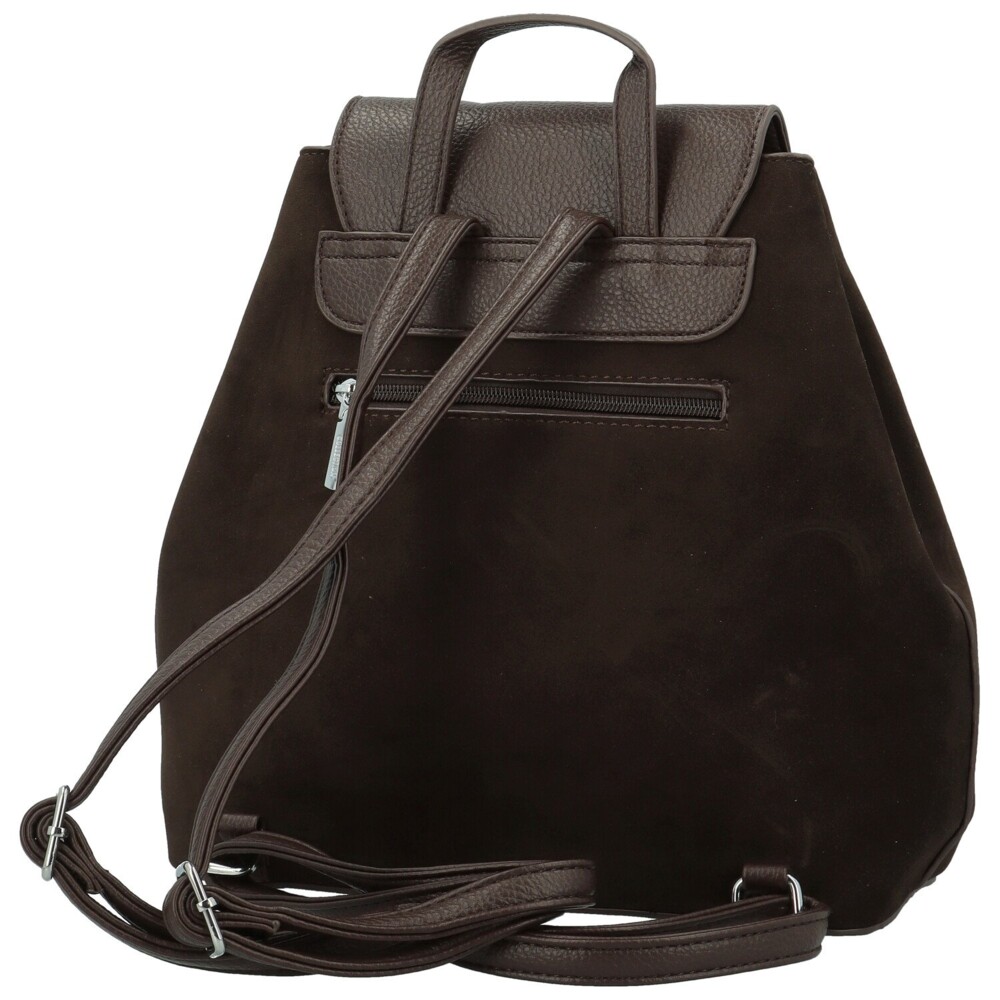 Elegantní dámský batoh z koženky, který zaujme svým promyšleným designem a kombinací materiálů. Tělo z hebké semišové koženky působí měkce a žensky, zatímco klopa a popruhy z hladké koženky dodávají celku moderní kontrast. Klopa s logem značky skrývá hlavní kapsu na zip, uvnitř najdete kapsičky v podšívce pro přehledné uspořádání věcí. Boční druky umožňují upravit tvar batohu podle potřeby, elegantně zúžit či ponechat prostornější. Nechybí zadní zipová kapsa, pevné ucho pro nošení v ruce a nastavitelné popruhy pro maximální pohodlí. Stříbrné kování podtrhuje stylový charakter batohu, který se skvěle hodí do města i na volné dny. Objednejte ještě dnes a vyzkoušejte, vrátit jej můžete až do 30 dnů!