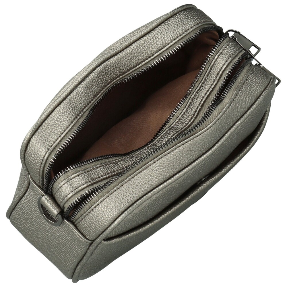 Tato stylová dámská crossbody kabelka z kvalitní koženky je ideálním doplňkem pro každý den. Praktické provedení nabízí dvě samostatné kapsy na zip v tmavě stříbrné barvě, které se postarají o dokonalý přehled a uspořádání věcí. Uvnitř najdete kapsičky v podšívce na drobnosti. Zadní stranu zdobí ještě jedna zipová kapsa. Kabelka je doplněna nastavitelným popruhem, díky němuž ji můžete nosit pohodlně přes rameno i křížem přes tělo. Decentní kovové logo na přední straně působí elegantně a dodává celému modelu moderní vzhled. Objednejte ještě dnes a vyzkoušejte, vrátit ji můžete až do 30 dnů!
