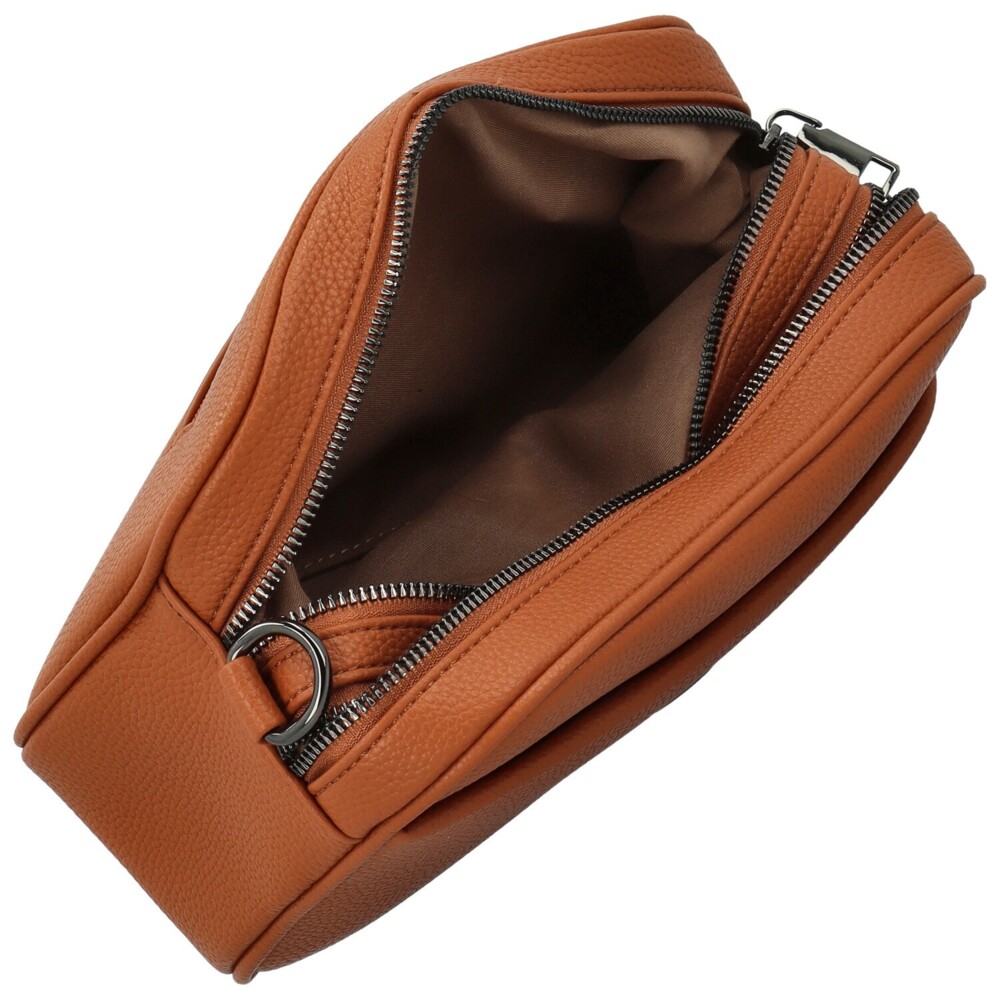 Tato stylová dámská crossbody kabelka z kvalitní koženky je ideálním doplňkem pro každý den. Praktické provedení nabízí dvě samostatné kapsy na zip v tmavě stříbrné barvě, které se postarají o dokonalý přehled a uspořádání věcí. Uvnitř najdete kapsičky v podšívce na drobnosti. Zadní stranu zdobí ještě jedna zipová kapsa. Kabelka je doplněna nastavitelným popruhem, díky němuž ji můžete nosit pohodlně přes rameno i křížem přes tělo. Decentní kovové logo na přední straně působí elegantně a dodává celému modelu moderní vzhled. Objednejte ještě dnes a vyzkoušejte, vrátit ji můžete až do 30 dnů!