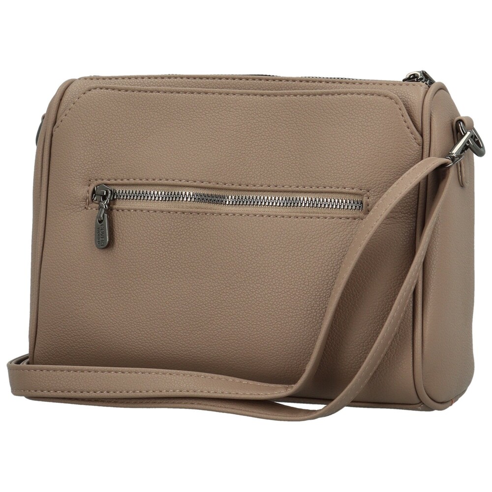 Stylová crossbody kabelka z jemné koženky s elegantním logem značky v tmavě stříbrném odstínu na přední straně. Hlavní prostor se zapíná na zip a nabízí přehledně řešený interiér s kapsičkami v podšívce. Po obou stranách hlavní kapsy se nachází dvě praktické otevřené přihrádky, které nenarušují čistý design kabelky. Dlouhý nastavitelný popruh umožňuje pohodlné nošení přes rameno i křížem. Nadčasový doplněk, který spojuje eleganci a praktičnost v jednom. Objednejte ještě dnes a vyzkoušejte, vrátit ji můžete až do 30 dnů!