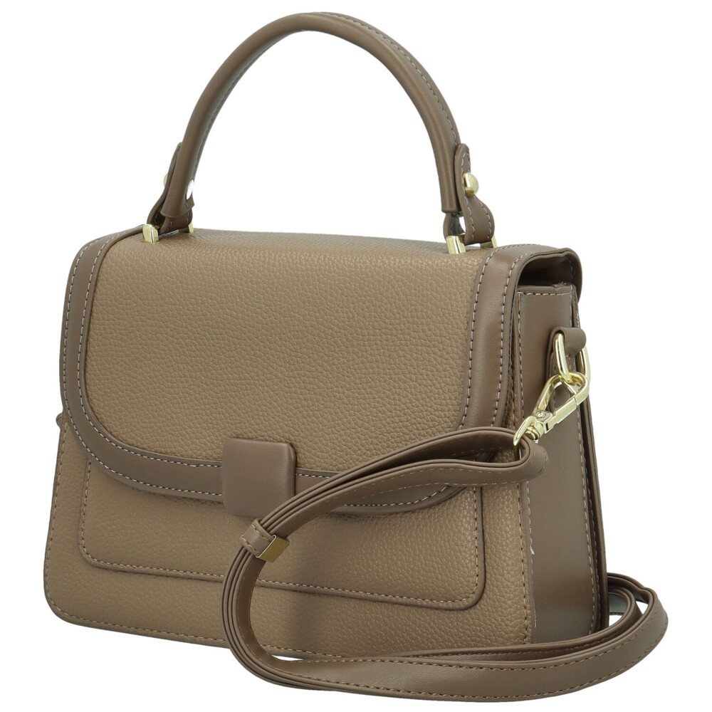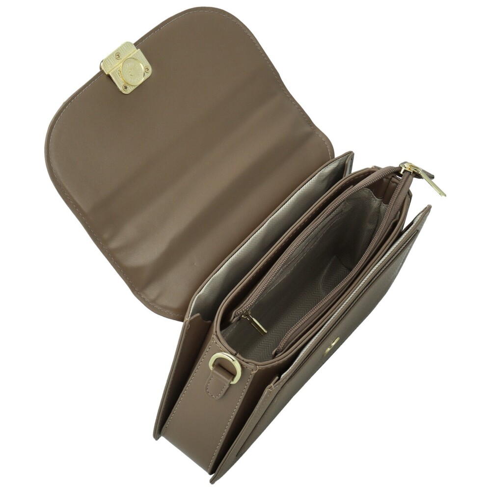 Stylová malá koženková kabelka v kufříkovém provedení. Zaoblená klopa skrývá hlavní kapsu na zip, uvnitř doplněnou menšími kapsičkami v podšívce a otevřenými kapsami vpředu i vzadu pro drobnosti. Pevné ucho umožňuje pohodlné nošení v ruce, dlouhý odnímatelný popruh zase promění kabelku na praktickou crossbody. Zlaté kování dodává elegantní a sofistikovaný detail. Krásný doplněk pro ženy, které hledají spojení praktičnosti, elegance a nezaměnitelného stylu. Objednejte ještě dnes a vyzkoušejte, vrátit ji můžete až do 30 dnů!