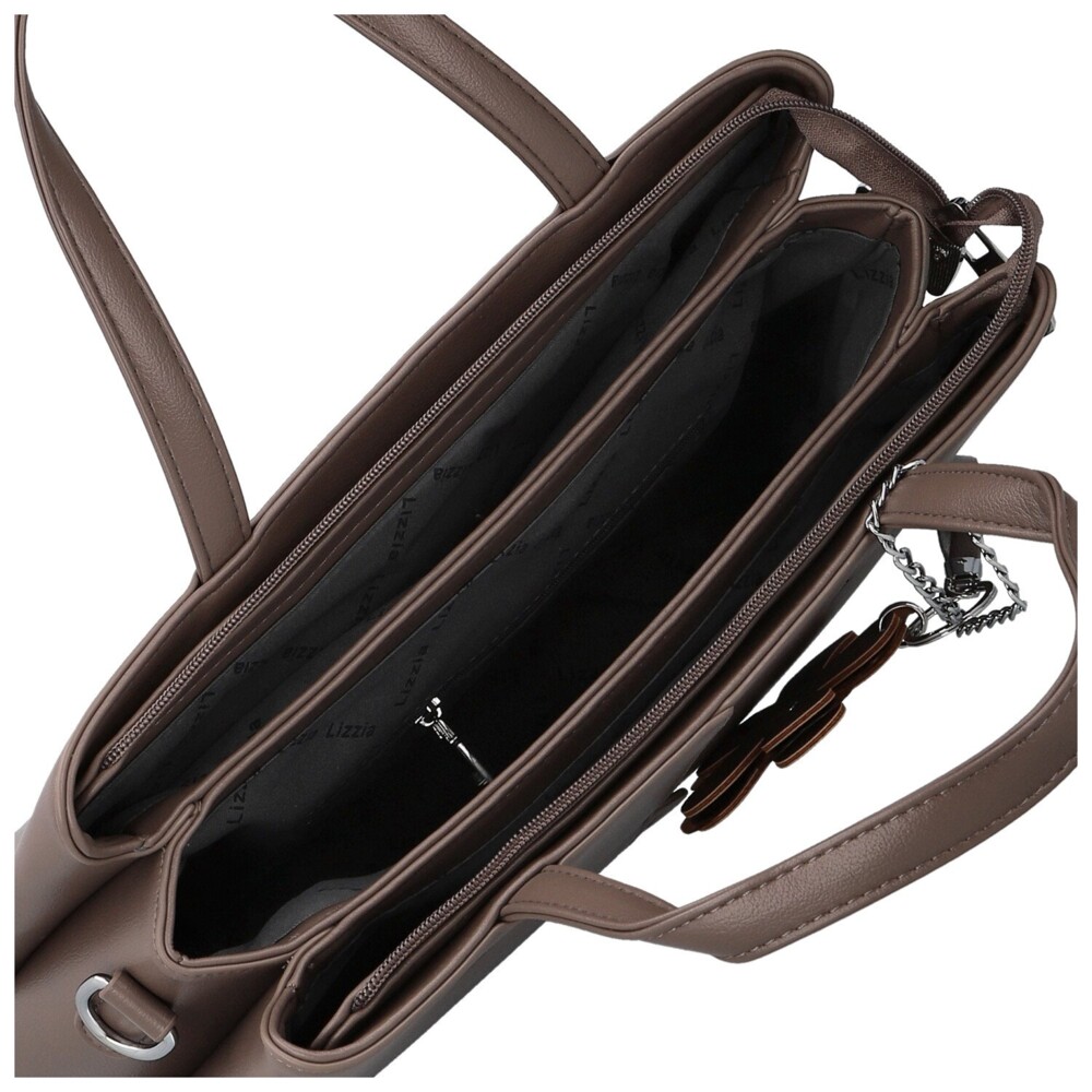 Tato dámská kabelka do ruky působí sofistikovaně a žensky zároveň. Přední část zdobí jemné logo značky a půvabný květinový přívěšek na stříbrném řetízku, který dodává kabelce jemný dotek luxusu. Uvnitř hlavní kapsy na zip se skrývá promyšleně rozdělený prostor do tří samostatných oddílů s kapsičkami v podšívce, ideální pro přehledné uspořádání drobností. Na zadní straně nechybí praktická kapsa na zip. Kabelka má pevná ucha, která skvěle padnou do ruky, a odnímatelný dlouhý popruh pro pohodlné nošení přes rameno. Stříbrné kování dotváří celkový elegantní vzhled, který se hodí jak k dennímu, tak i večernímu outfitu. Objednejte ještě dnes a vyzkoušejte, vrátit ji můžete až do 30 dnů!