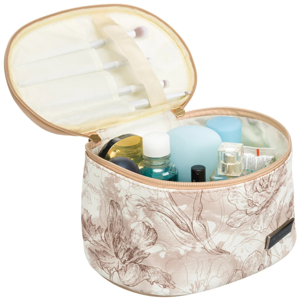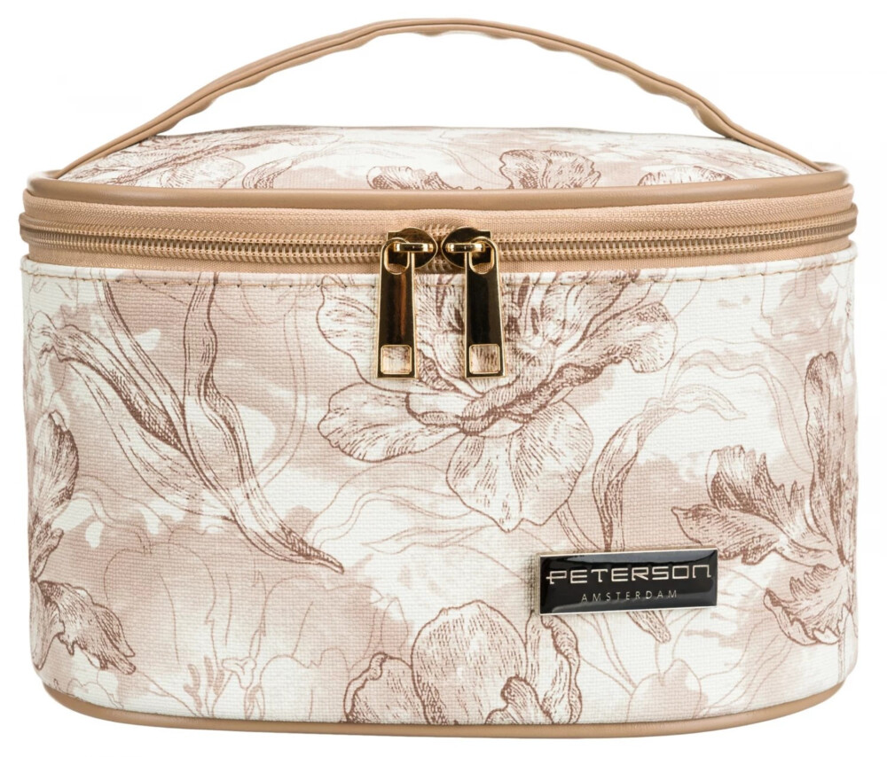 Tato kosmetická taška s květinovým vzorem vyniká svou jemností a elegancí. Romantický popis dodává taštičce šmrnc i osobitý styl. Uvnitř tašky jsou čtyři praktické přihrádky určené pro štětce na make-up, které jsou zajištěny širokou gumičkou pro udržení věcí na místě. Přední strana je zdobena kovovou plaketou s vyrytým logem Peterson. Taštička disponuje pevným uchem pro přenášení. Lesklý a odolný materiál se snadno udržuje, takže taštička je ideální jak do kabelky na každý den, tak i jako společník na cesty. Objednejte ještě dnes a vyzkoušejte, vrátit ji můžete do 30 dnů!