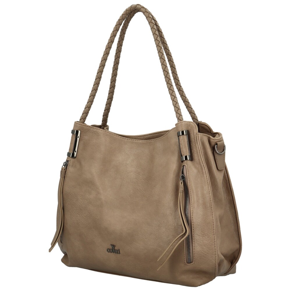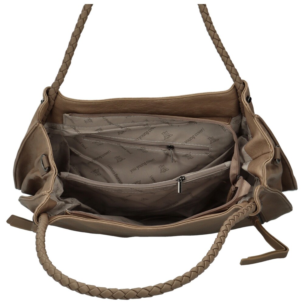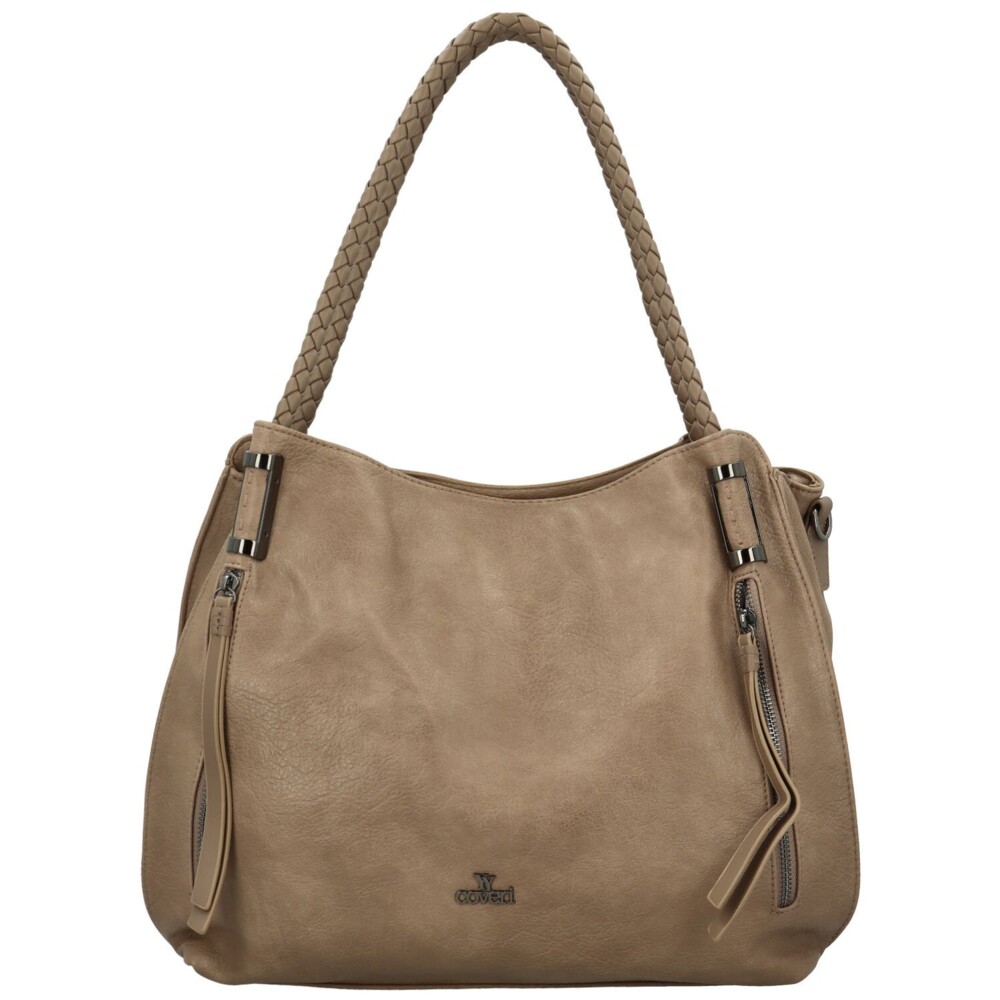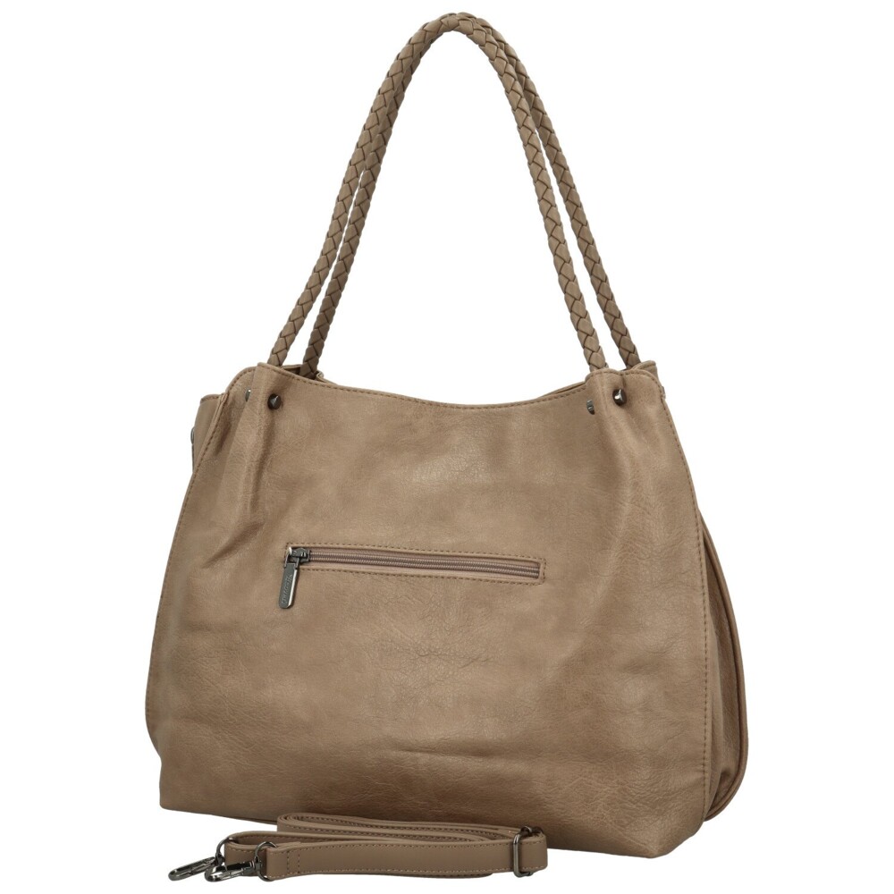 Přední část této kabelky je navržena tak, aby okamžitě upoutala pozornost svou propracovaností a jemnými detaily. Hladký koženkový povrch působí elegantně a luxusně, přičemž decentní logo značky umístěné ve spodní části dodává kabelce sofistikovaný podpis. Výrazným designovým prvkem jsou dvojice svislých zipů po stranách, doplněné o dlouhé koženkové taháčky, ty nejen oživují celkový vzhled, ale zároveň přidávají praktický prvek. Pletená ramínka plynule navazují na horní okraj a tvoří kontrast k čistým liniím přední plochy. Zadní část disponuje zipovou kapsičkou. Hlavní kapsa se otevírá zipem a uvnitř jsou kapsičky v podšívce i středová zipová kapsa pro lepší organizaci. Tmavě stříbrné kování působí vyváženě a decentně. Objednejte ještě dnes a vyzkoušejte, vrátit ji můžete až do 30 dnů!