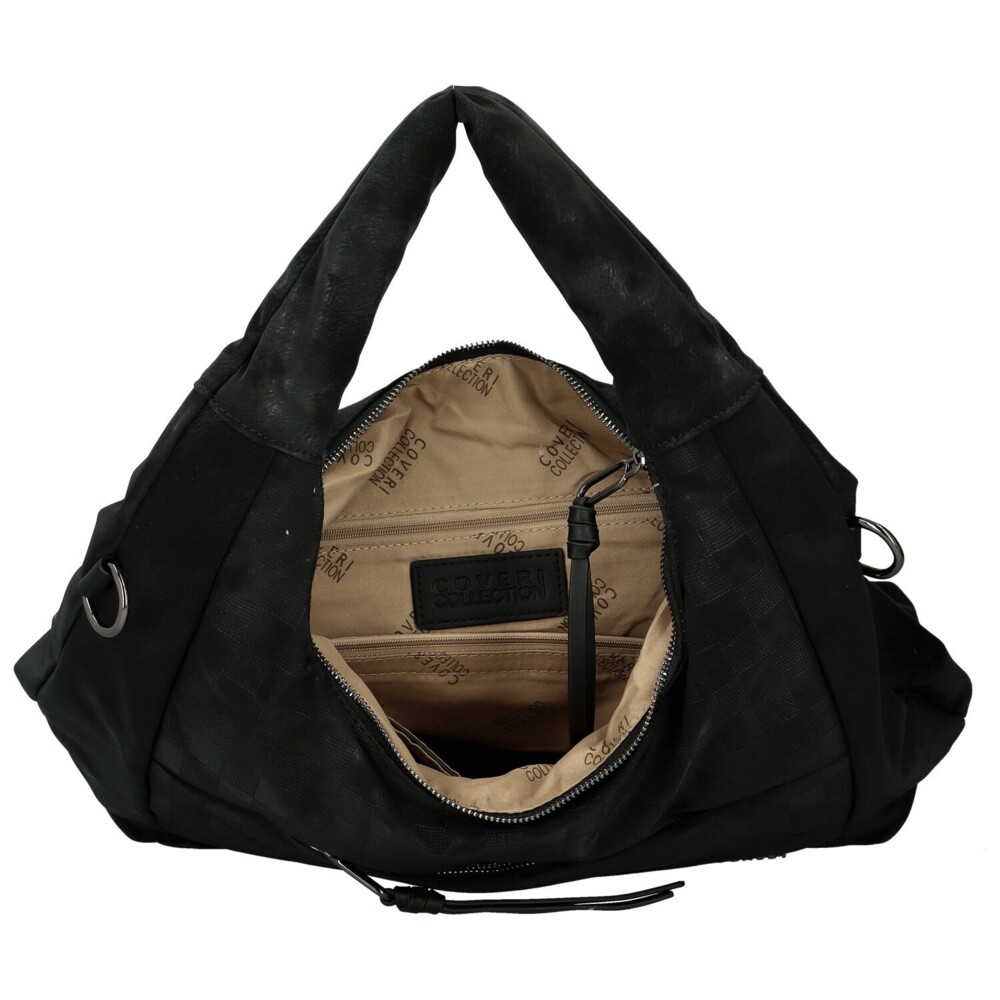 Stylová dámská kabelka z koženky, která spojuje eleganci s praktičností. Díky pevnému uchu ji můžete pohodlně nosit na rameni, součástí je také odnímatelný a délkově nastavitelný popruh pro variabilní využití. Přední část zdobí jemný čtverečkovaný vzor, decentní logo značky a praktická zipová kapsa. Hlavní prostor se zapíná na zip a uvnitř je členěn kapsičkami v podšívce a středovou zipovou přihrádkou, která odděluje prostor. Na zadní straně nechybí zipová kapsa na drobnosti. Kabelka je měkká, poddajná a elegantně doplněná tmavě stříbrným kováním. Objednejte ještě dnes a vyzkoušejte, vrátit ji můžete až do 30 dnů!