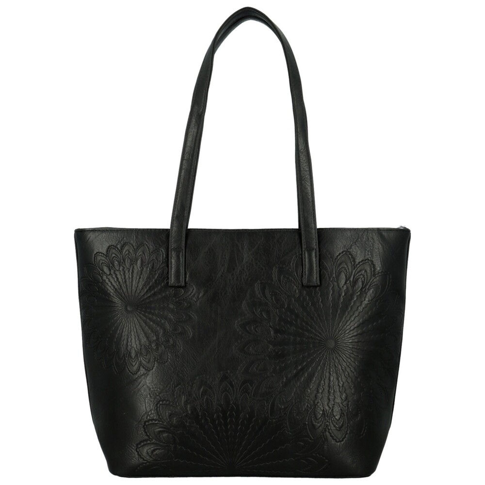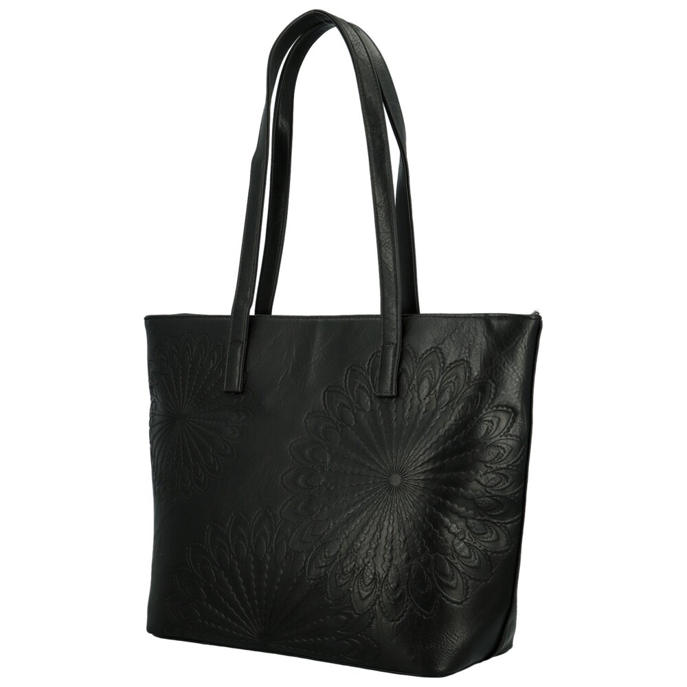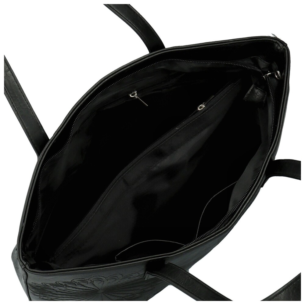 Tato velká kabelka z jemné koženky je ztělesněním jednoduché elegance s dotekem originality. Přední stranu zdobí nádherné vyšívané květinové motivy, které působí plasticky a dodávají kabelce jedinečný, ženský charakter. Díky dlouhým uchům ji můžete pohodlně nosit přes rameno i v ruce. Hlavní kapsa na zip ukrývá prostorný interiér se středovou zipovou kapsou, která dělí prostor na dvě části, a menší kapsičky v podšívce pro přehledné uspořádání všech drobností. Stříbrné kování podtrhuje její moderní vzhled a dokonale ladí s decentní barvou kabelky. Stylová, praktická a s nádechem originality. Objednejte ještě dnes a vyzkoušejte, vrátit ji můžete až do 30 dnů!