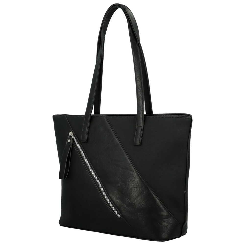 Velká koženková kabelka zaujme na první pohled svým moderním geometrickým designem. Přední stranu zdobí šikmé pruhy v různých odstínech, které společně vytvářejí elegantní hru barev a textur. Styl doplňuje šikmá zipová kapsa, která působí originálně a zároveň je praktickým detailem. Díky dlouhým uchům kabelka pohodlně sedí na rameni a poskytuje dostatek prostoru pro všechny vaše denní nezbytnosti. Hlavní kapsa na zip skrývá vnitřní kapsičky v podšívce a středovou zipovou kapsu, která dělí prostor a udržuje pořádek. Na zadní straně se nachází další zipová kapsa. Stříbrné kování podtrhuje její moderní vzhled a dodává jí šmrnc. Skvělá volba pro ženy, které hledají praktickou, ale stylovou kabelku, která oživí každý outfit. Objednejte ještě dnes a vyzkoušejte, vrátit ji můžete až do 30 dnů!