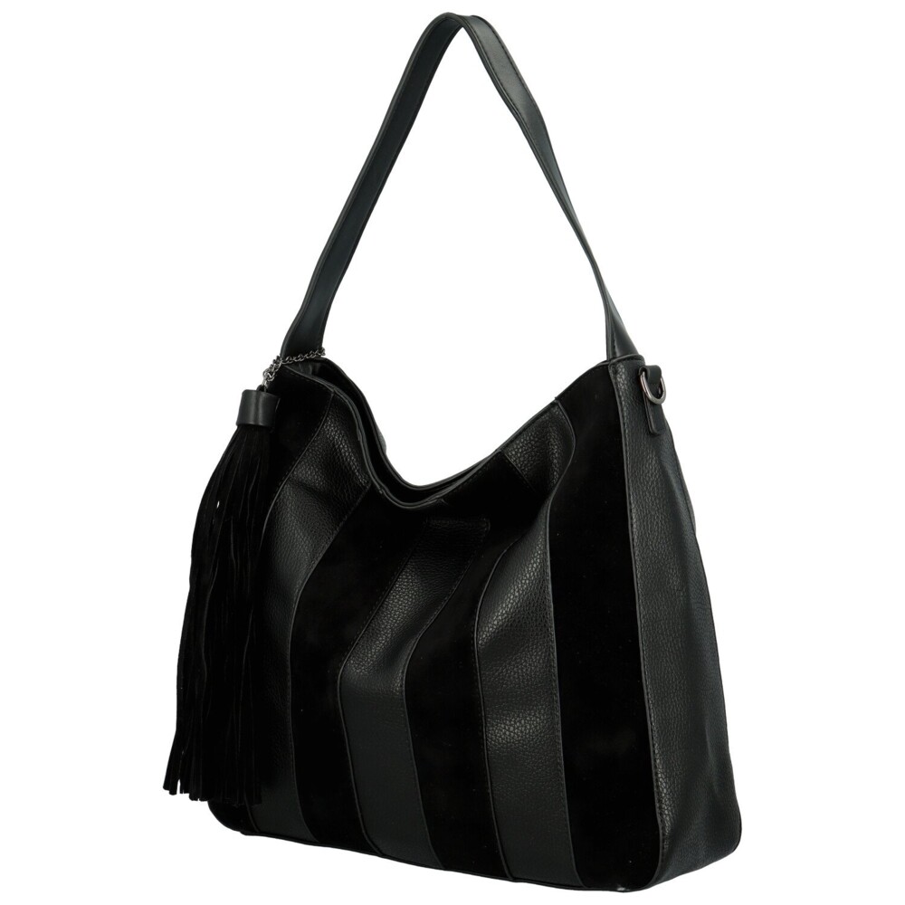 Stylová dámská kabelka, která v sobě spojuje eleganci i praktičnost. Přední strana je ozdobena svislými pruhy ve dvou odstínech, což jí dodává moderní a zajímavý vzhled. Na pevném uchu je zavěšený výrazný střapec, který působí jako originální detail. Hlavní prostor kabelky je uzavíratelný zipem a uvnitř nabízí kapsičky v podšívce a praktickou středovou zipovou kapsu. Zadní část doplňuje zipová kapsa na drobnosti. Kabelku lze nosit jak v ruce nebo na rameni, tak i pohodlně přes tělo díky přídavnému dlouhému popruhu. Objednejte ještě dnes a vyzkoušejte, vrátit ji můžete až do 30 dnů!