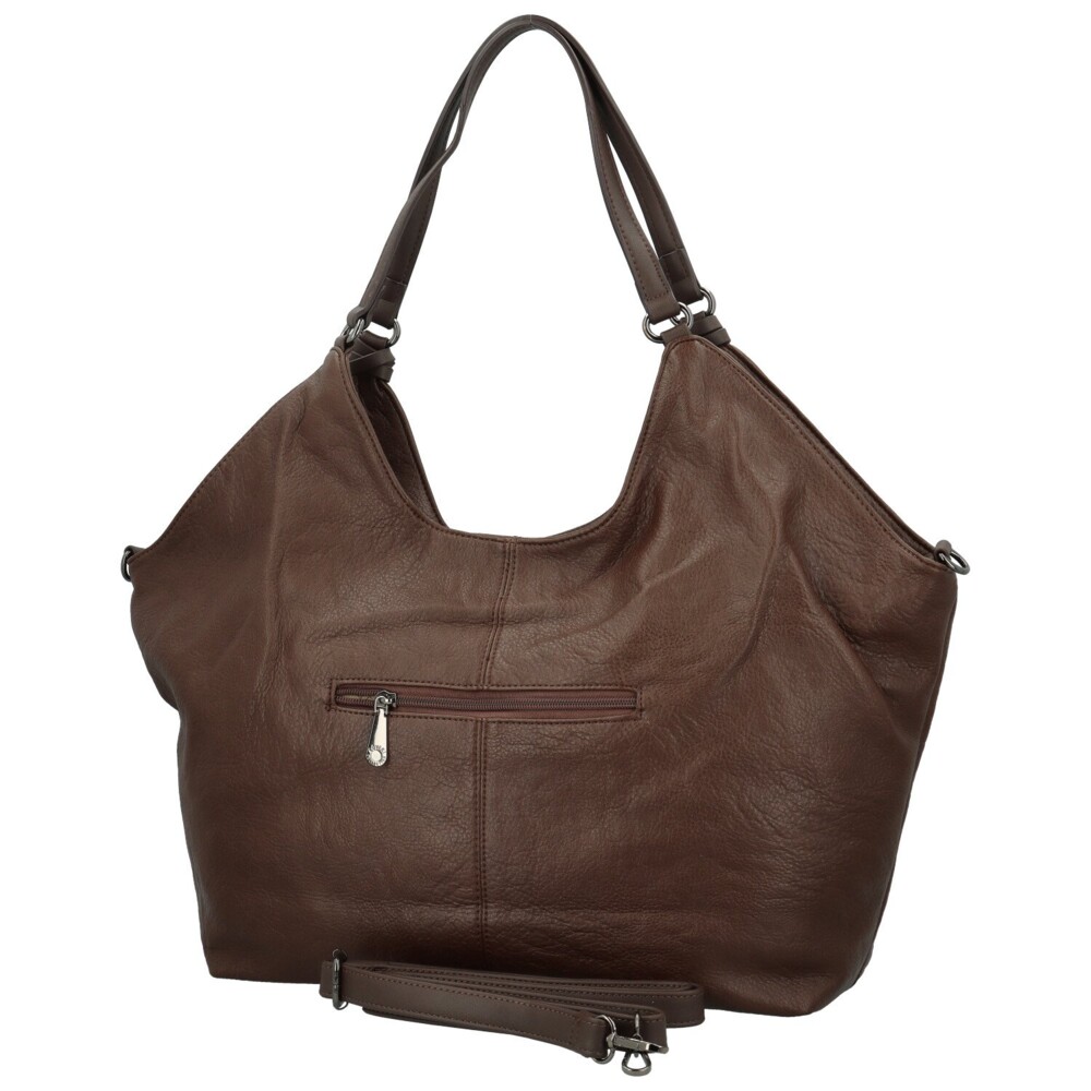 Kabelka zaujme na první pohled svým elegantním a současně ležérním stylem. Přední stranu zdobí jemně zvrásněný povrch, který působí přirozeně a dodává kabelce šmrnc. U uch jsou efektně stažené koženkové pásky provlečené tmavě stříbrnými kroužky, jež tvoří designový detail a zároveň posilují celkovou pevnost konstrukce. Ve spodní části je umístěno logo značky. Na zadní straně se nachází praktická zipová kapsička, ideální pro drobnosti, které chcete mít po ruce. Hlavní prostor je uzavíratelný na zip a vnitřní část je vybavena podšívkou s více kapsičkami, dvě z nich jsou na zip. Kabelka má dvě pevná ucha pro pohodlné nošení na rameni a navíc je doplněna o dlouhý odnímatelný popruh, který umožňuje variabilní nošení. Tento model je univerzální a ideální na každodenní nošení. Objednejte ještě dnes a vyzkoušejte, vrátit ji můžete až do 30 dnů!