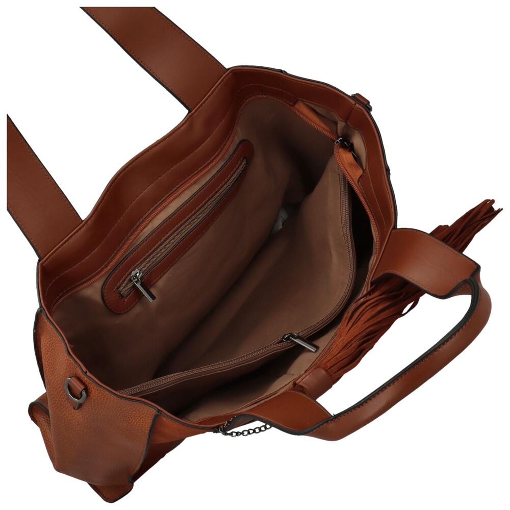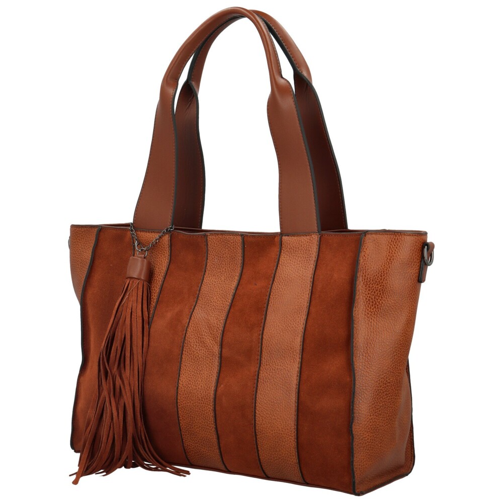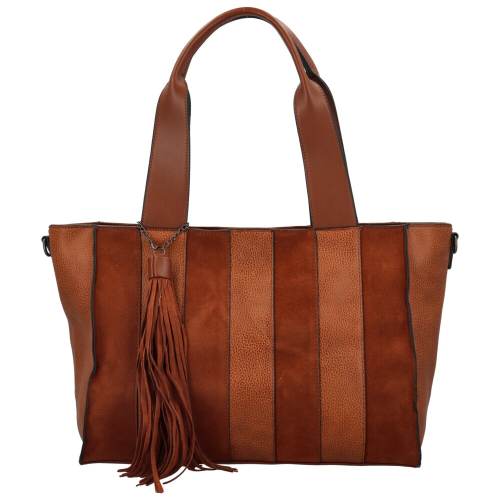 Stylová dámská kabelka z koženky, která spojuje eleganci s praktickým využitím. Přední strana je řešena designově, zdobí ji svislé pruhy ve dvou odstínech, které působí svěže a originálně. Na uchu visí výrazný střapec, jenž dodává kabelce ležérní nádech. Pevné uši jsou navržené tak, aby kabelka pohodlně seděla na rameni. Hlavní kapsa na zip skrývá velkou středovou zipovou kapsu a praktické přihrádky v podšívce, takže vše zůstane přehledně uspořádané. Na zadní straně se nachází zipová kapsa na drobnosti. Pro větší variabilitu můžete využít i dlouhý nastavitelný popruh a nosit kabelku pohodlně přes tělo. Objednejte ještě dnes a vyzkoušejte, vrátit ji můžete až do 30 dnů!