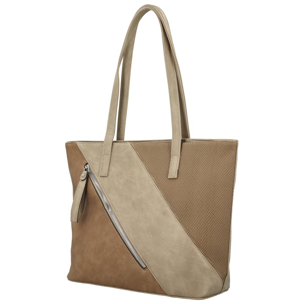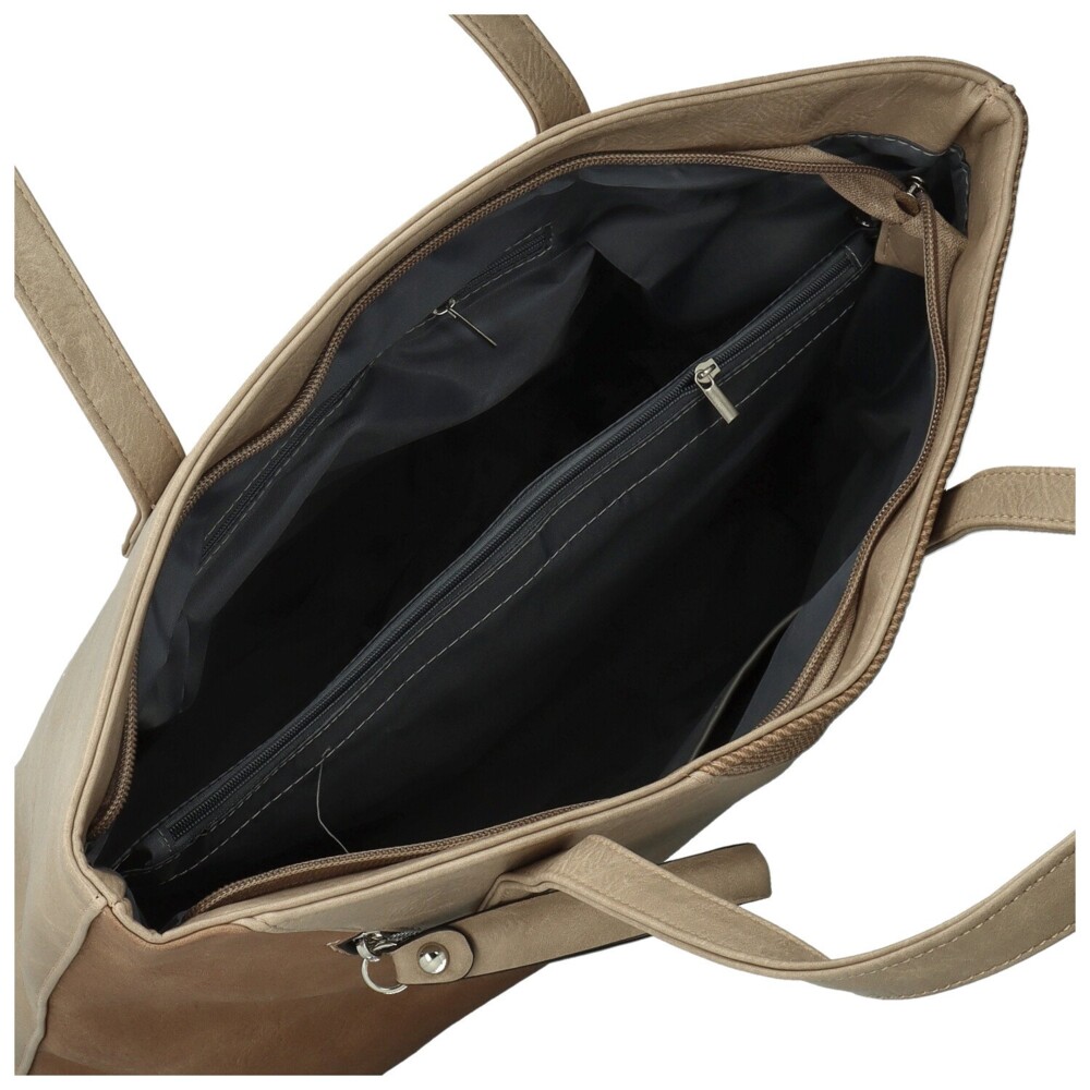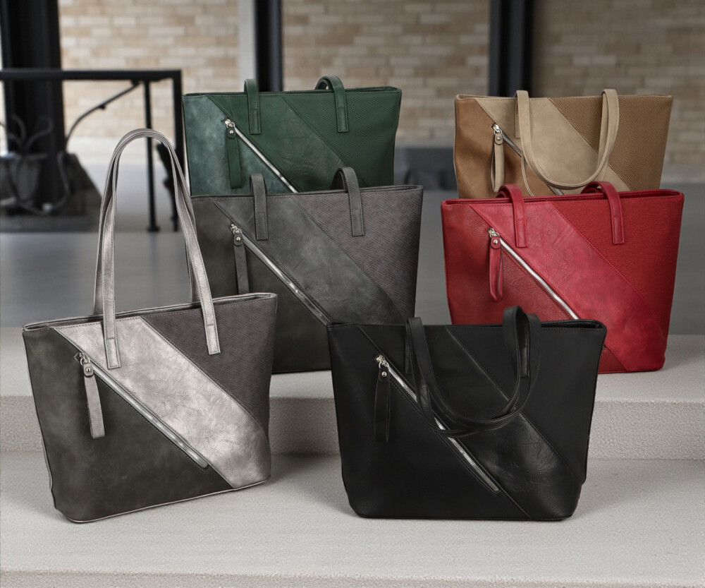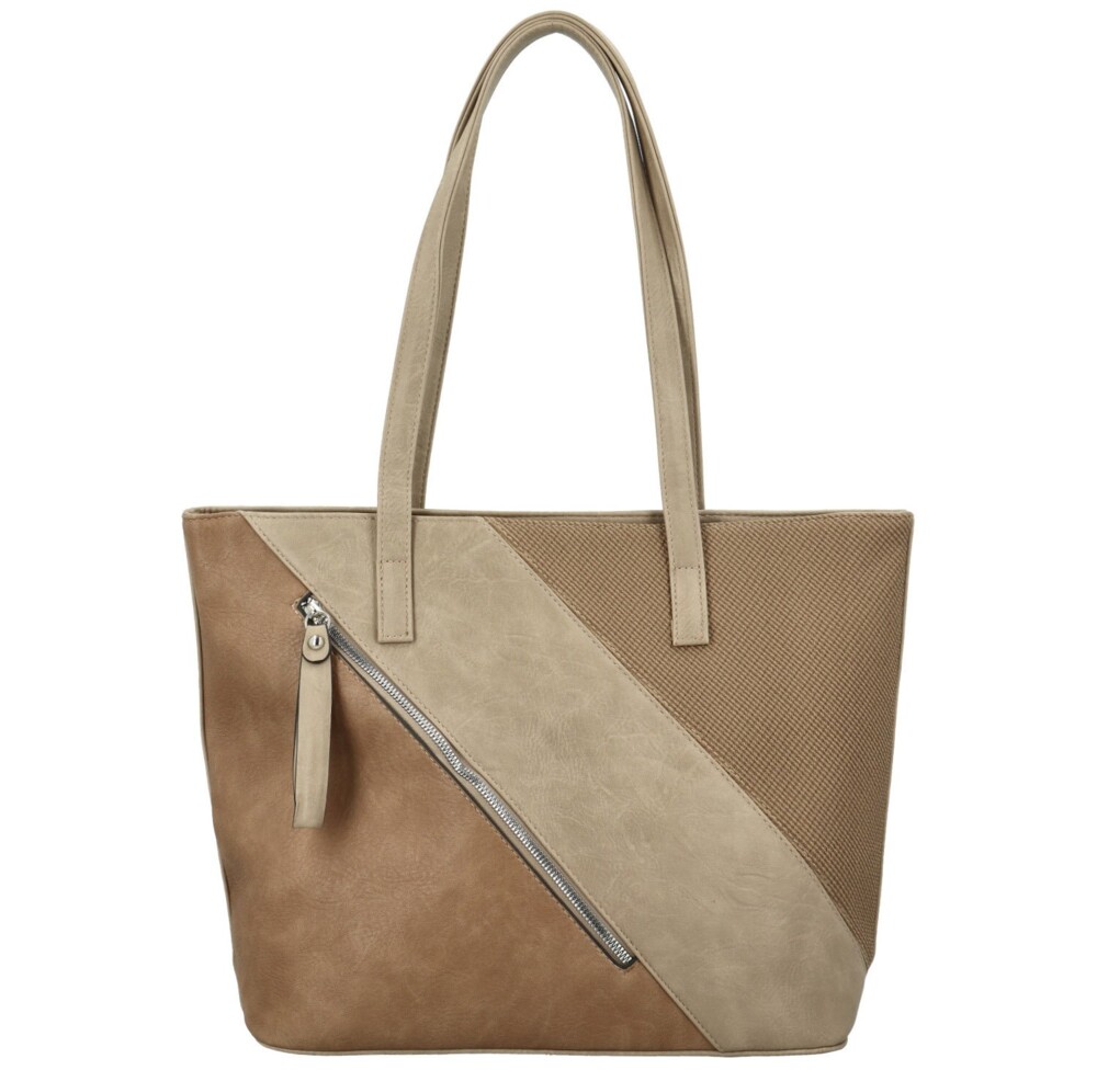 Velká koženková kabelka zaujme na první pohled svým moderním geometrickým designem. Přední stranu zdobí šikmé pruhy v různých odstínech, které společně vytvářejí elegantní hru barev a textur. Styl doplňuje šikmá zipová kapsa, která působí originálně a zároveň je praktickým detailem. Díky dlouhým uchům kabelka pohodlně sedí na rameni a poskytuje dostatek prostoru pro všechny vaše denní nezbytnosti. Hlavní kapsa na zip skrývá vnitřní kapsičky v podšívce a středovou zipovou kapsu, která dělí prostor a udržuje pořádek. Na zadní straně se nachází další zipová kapsa. Stříbrné kování podtrhuje její moderní vzhled a dodává jí šmrnc. Skvělá volba pro ženy, které hledají praktickou, ale stylovou kabelku, která oživí každý outfit. Objednejte ještě dnes a vyzkoušejte, vrátit ji můžete až do 30 dnů!