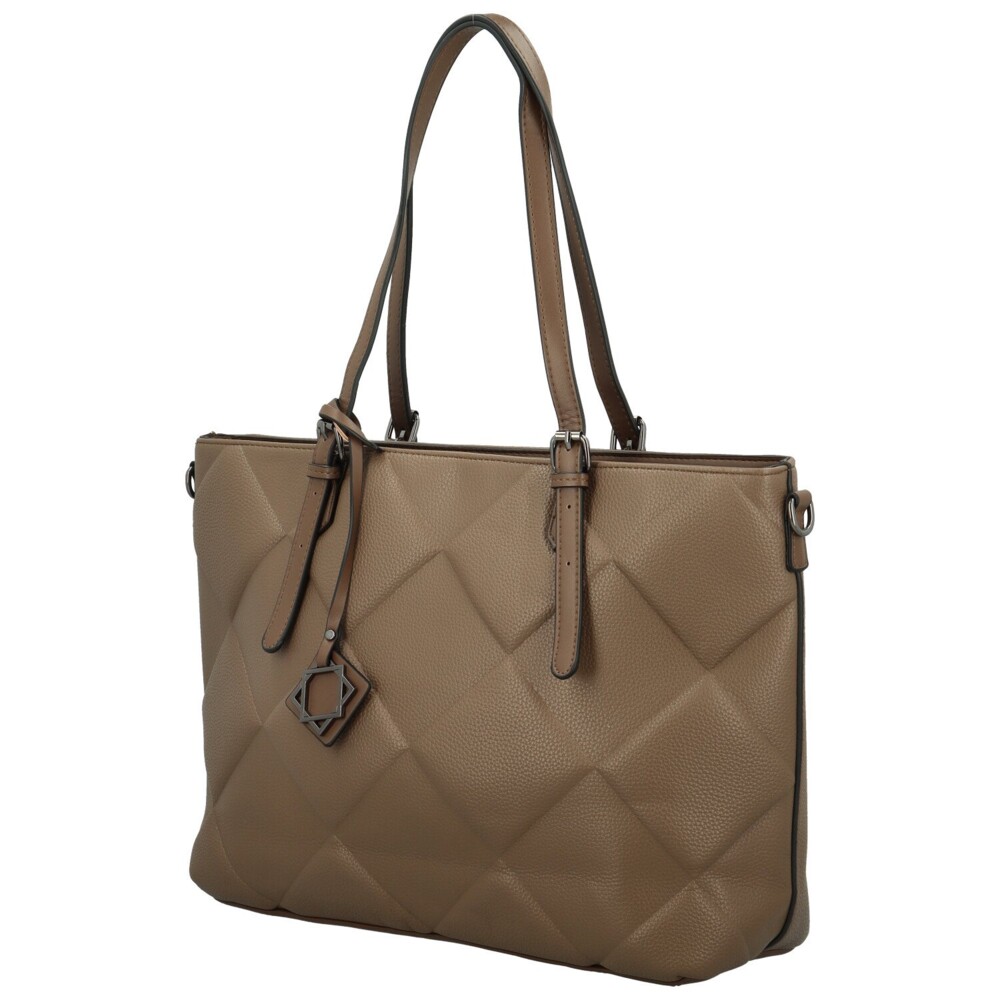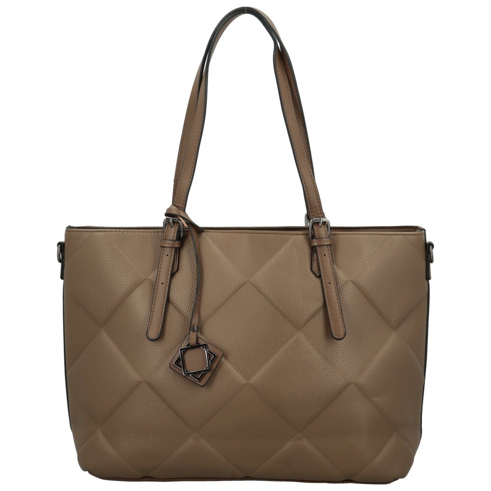 Tahle větší koženková kabelka je stvořená pro ženy, které chtějí mít styl a zároveň dostatek prostoru pro všechny své věci. Přední stranu zdobí originální detail, jemně vytlačený čtvercový vzor, který působí decentně, ale přitom jedinečně. Eleganci doplňuje designový přívěsek, jenž kabelce dodává šmrnc. Dlouhé uši jsou vybavené přezkami v tmavě stříbrné barvě, takže si jejich délku snadno přizpůsobíte. Zadní část nabízí praktickou zipovou kapsu na drobnosti. Hlavní prostor se uzavírá zipem a ukrývá kapsičky v podšívce i středovou zipovou kapsu pro lepší přehled. A když se vám zachce volnosti, stačí připnout nastavitelný dlouhý popruh a kabelku pohodlně nosit i crossbody. Jeden kousek, spousta možností. Objednejte ještě dnes a vyzkoušejte, vrátit ji můžete až do 30 dnů!