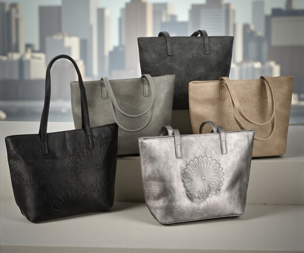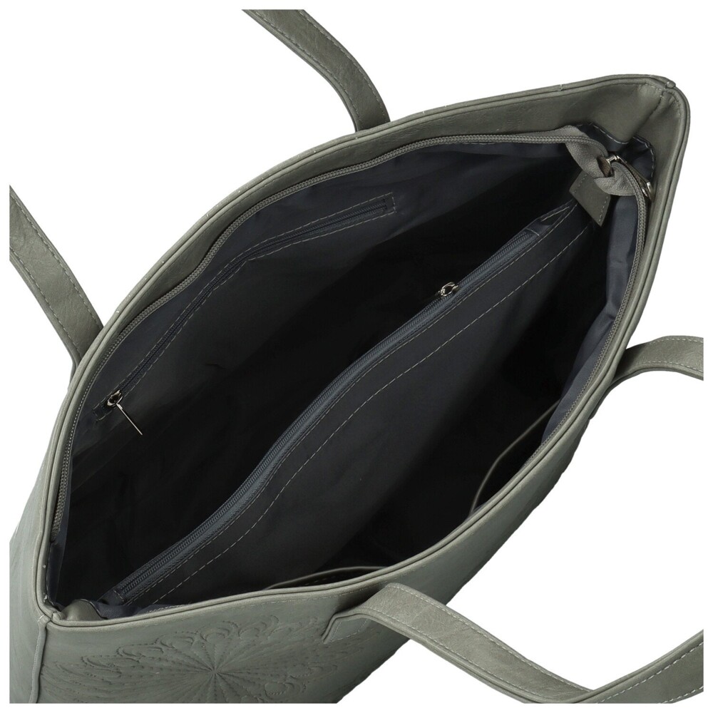 Tato velká kabelka z jemné koženky je ztělesněním jednoduché elegance s dotekem originality. Přední stranu zdobí nádherné vyšívané květinové motivy, které působí plasticky a dodávají kabelce jedinečný, ženský charakter. Díky dlouhým uchům ji můžete pohodlně nosit přes rameno i v ruce. Hlavní kapsa na zip ukrývá prostorný interiér se středovou zipovou kapsou, která dělí prostor na dvě části, a menší kapsičky v podšívce pro přehledné uspořádání všech drobností. Stříbrné kování podtrhuje její moderní vzhled a dokonale ladí s decentní barvou kabelky. Stylová, praktická a s nádechem originality. Objednejte ještě dnes a vyzkoušejte, vrátit ji můžete až do 30 dnů!