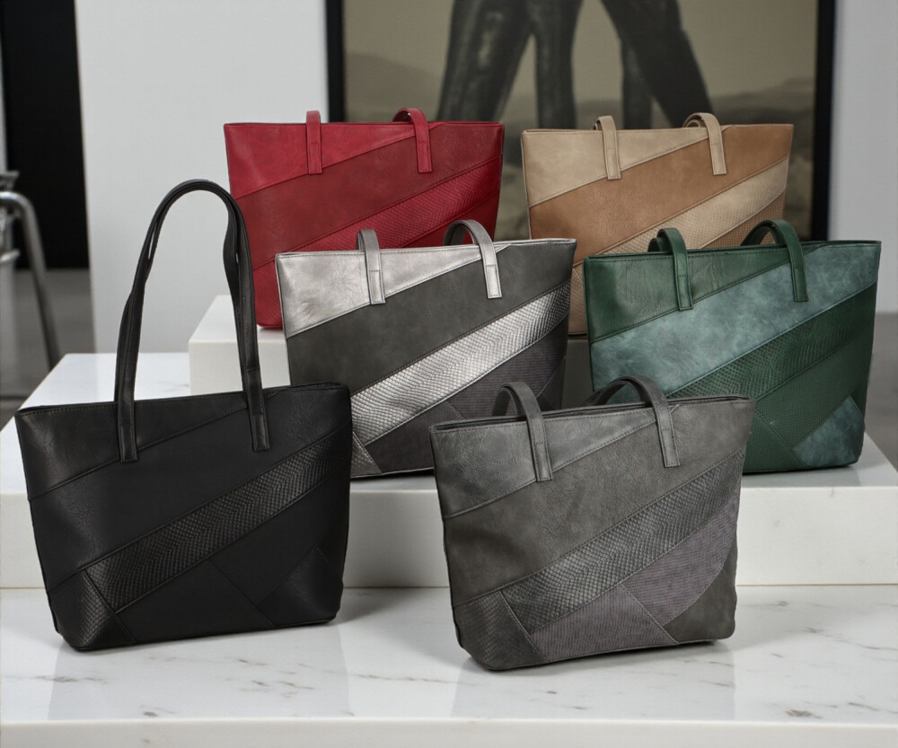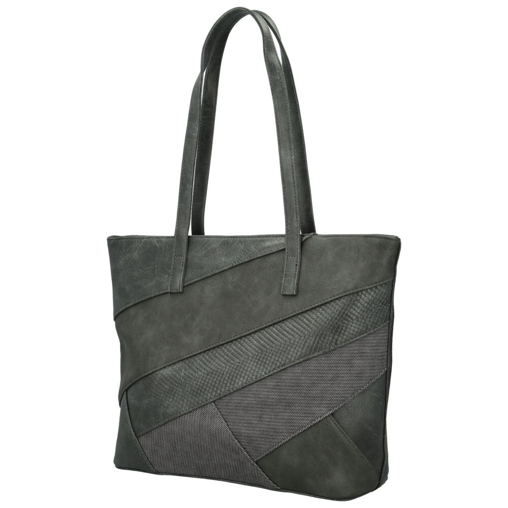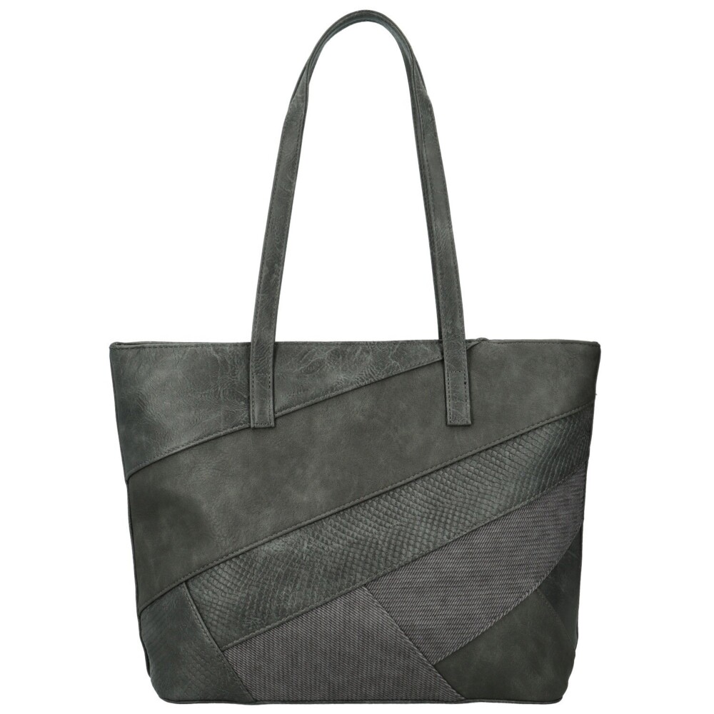 Stylová a výrazná, tato koženková kabelka zaujme svým originálním provedením a šikmými pruhy z různých odstínů a struktur materiálů, které jí dodávají moderní a elegantní vzhled. Kombinace matných a lesklejších textur vytváří jedinečný efekt, díky kterému kabelka působí luxusně a nadčasově. Díky dlouhým uchům se pohodlně nosí na rameni a poskytuje dostatek prostoru pro všechny vaše nezbytnosti. Uvnitř se nachází hlavní kapsa na zip, praktické kapsičky v podšívce a středová zipová kapsa, která prostor rozděluje a pomáhá udržet pořádek. Na zadní straně je menší zipová kapsička pro drobnosti. Stříbrné kování krásně ladí s barvou kabelky. Dokonalá volba pro ženy, které chtějí praktický, ale zároveň designový doplněk. Objednejte ještě dnes a vyzkoušejte, vrátit jej můžete až do 30 dnů!