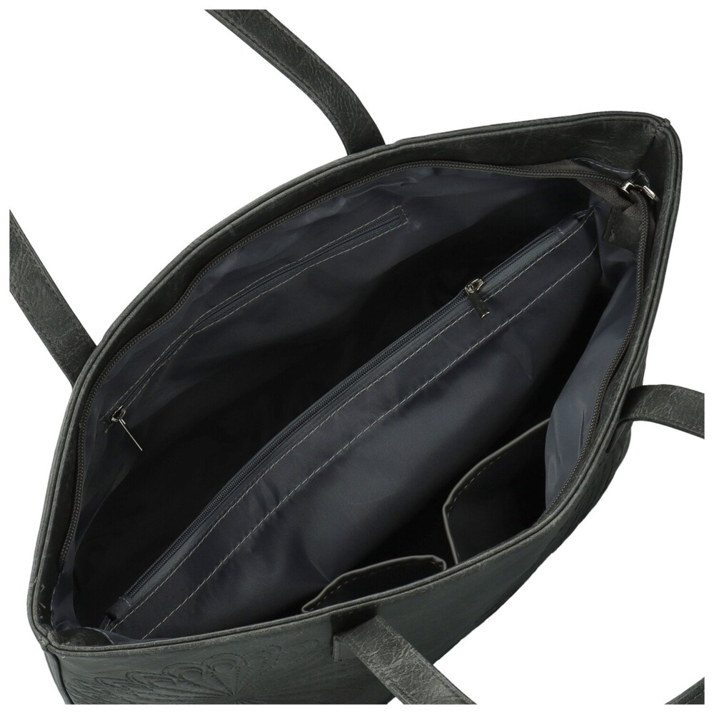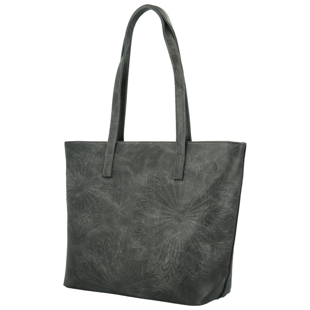 Tato velká kabelka z jemné koženky je ztělesněním jednoduché elegance s dotekem originality. Přední stranu zdobí nádherné vyšívané květinové motivy, které působí plasticky a dodávají kabelce jedinečný, ženský charakter. Díky dlouhým uchům ji můžete pohodlně nosit přes rameno i v ruce. Hlavní kapsa na zip ukrývá prostorný interiér se středovou zipovou kapsou, která dělí prostor na dvě části, a menší kapsičky v podšívce pro přehledné uspořádání všech drobností. Stříbrné kování podtrhuje její moderní vzhled a dokonale ladí s decentní barvou kabelky. Stylová, praktická a s nádechem originality. Objednejte ještě dnes a vyzkoušejte, vrátit ji můžete až do 30 dnů!
