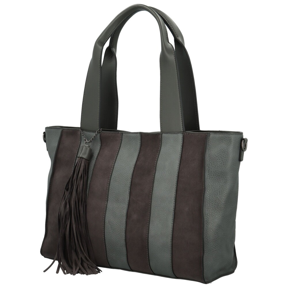 Stylová dámská kabelka z koženky, která spojuje eleganci s praktickým využitím. Přední strana je řešena designově, zdobí ji svislé pruhy ve dvou odstínech, které působí svěže a originálně. Na uchu visí výrazný střapec, jenž dodává kabelce ležérní nádech. Pevné uši jsou navržené tak, aby kabelka pohodlně seděla na rameni. Hlavní kapsa na zip skrývá velkou středovou zipovou kapsu a praktické přihrádky v podšívce, takže vše zůstane přehledně uspořádané. Na zadní straně se nachází zipová kapsa na drobnosti. Pro větší variabilitu můžete využít i dlouhý nastavitelný popruh a nosit kabelku pohodlně přes tělo. Objednejte ještě dnes a vyzkoušejte, vrátit ji můžete až do 30 dnů!