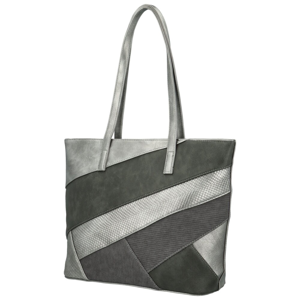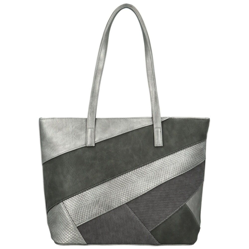 Stylová a výrazná, tato koženková kabelka zaujme svým originálním provedením a šikmými pruhy z různých odstínů a struktur materiálů, které jí dodávají moderní a elegantní vzhled. Kombinace matných a lesklejších textur vytváří jedinečný efekt, díky kterému kabelka působí luxusně a nadčasově. Díky dlouhým uchům se pohodlně nosí na rameni a poskytuje dostatek prostoru pro všechny vaše nezbytnosti. Uvnitř se nachází hlavní kapsa na zip, praktické kapsičky v podšívce a středová zipová kapsa, která prostor rozděluje a pomáhá udržet pořádek. Na zadní straně je menší zipová kapsička pro drobnosti. Stříbrné kování krásně ladí s barvou kabelky. Dokonalá volba pro ženy, které chtějí praktický, ale zároveň designový doplněk. Objednejte ještě dnes a vyzkoušejte, vrátit jej můžete až do 30 dnů!