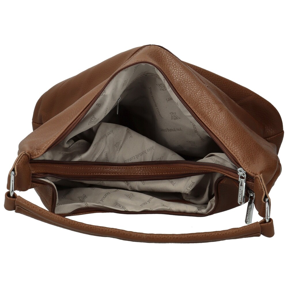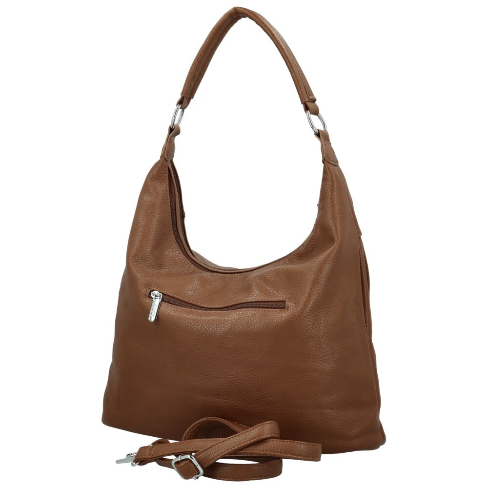 Stylová dámská kabelka z koženky, která spojuje eleganci s praktičností. Díky pevnému uchu ji můžete pohodlně nosit na rameni, součástí je také odnímatelný a délkově nastavitelný popruh pro variabilní využití. Přední část zdobí dva stříbrné vodorovné zipy a logo značky. Hlavní kapsy jsou hned dvě a uzavírají se zipy, uvnitř jsou kapsičky v podšívce pro lepší organizaci. Na zadní straně nechybí zipová kapsička pro drobnosti. Kabelka je měkká, poddajná a elegantně doplní vaše outfity. Objednejte ještě dnes a vyzkoušejte, vrátit ji můžete až za 30 dnů!