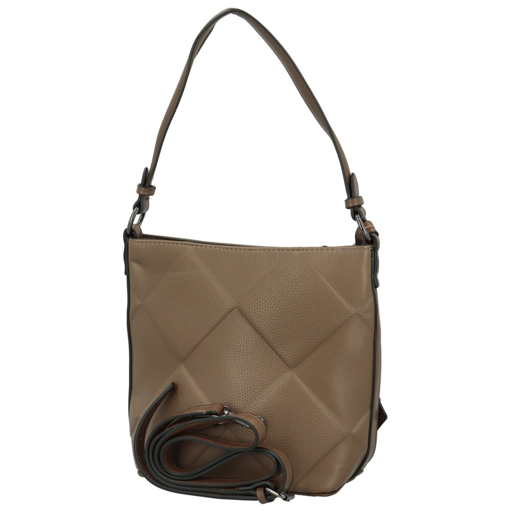 Tato dámská kabelka z měkké, ale pevné koženky zaujme svým elegantním tvarem a moderním zpracováním. Přední i zadní část zdobí decentní geometrický motiv v podobě jemně vytlačených čtverců, který kabelce dodává strukturu a osobitost. U jednoho z uch je umístěn ozdobný přívěsek v designovém tvaru, jenž celý model příjemně oživuje. Do hlavní kapsy uzavíratelné na zip se snadno vejde vše potřebné. Její vnitřní prostor je promyšleně členěn, najdete zde kapsičky v podšívce i praktickou středovou zipovou kapsu. Kabelka má pohodlné ucho pro nošení na rameni a zároveň odnímatelný, nastavitelný popruh, který umožňuje nosit ji i jako crossbody. Stříbrné kování podtrhuje moderní vzhled a dodává kabelce jemný nádech luxusu, díky čemuž se stává skvělým doplňkem pro všední dny i elegantní příležitosti. Objednejte ještě dnes a vyzkoušejte, vrátit ji můžete až do 30 dnů!