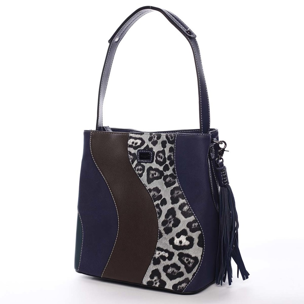 Luxusní, originální kabelka přes rameno, v barevné zimní kombinaci tmavě modré a tmavě hnědé je obohacena o specifický vzor. David Jones vyrábí spolehlivé módní kabelky do různých společností. Tuto kabelku lze připojit k outfitu do společnosti, na romantické večeře, večerní posezení s přáteli nebo na nákupy ve městech. Vlnité, různě barevné a vzorované pásy jsou prošívané. Stěny kabelky jsou měkké, ale dno je pevné a na spodní straně jsou spony proti oděrkám. Bonusem je odnímatelný, velký přívěsek ve formě střapců. Kabelku lze nosit přes rameno nebo i s popruhem. Hlavní prostory jsou tři, oddělené. Boční kapsy mají magnetické cvoky, prostřední kapsa je na zip. Najdete zde i dvě menší kapsičky na cennosti a drobnosti. Vzory kabelky se snaží imitovat kůže v různých podobách. Objednejte ještě dnes a vyzkoušejte, vrátit ji můžete až za 30 dnů!