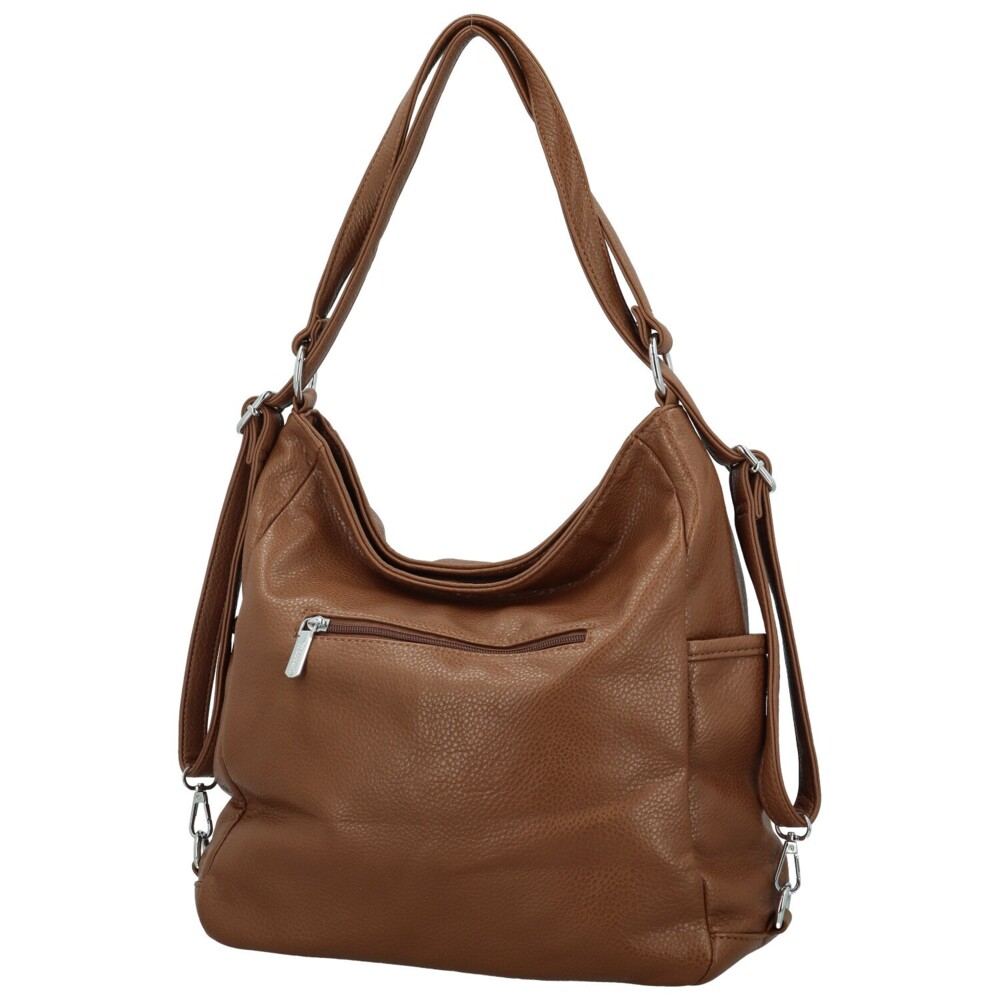 Dámský kabelko-batoh z kvalitní koženky je praktickým a elegantním doplňkem pro každodenní nošení. Na přední straně jej zdobí zipová kapsa doplněná o decentní logo značky. Hlavní prostor se zapíná na zip a uvnitř najdete kapsičky v podšívce i středovou zipovou kapsu pro lepší přehlednost. Zadní strana je vybavena další kapsou na zip, ideální pro drobnosti. Po stranách se nacházejí dvě otevřené kapsičky, které využijete třeba na klíč nebo telefon. Popruhy jsou nastavitelné a díky chytrému řešení je lze jedním zatažením snadno proměnit z kabelky na batoh. Celý design doplňuje stříbrné kování, které dodává moderní vzhled. Objednejte ještě dnes a vyzkoušejte, vrátit jej můžete až za 30 dnů!