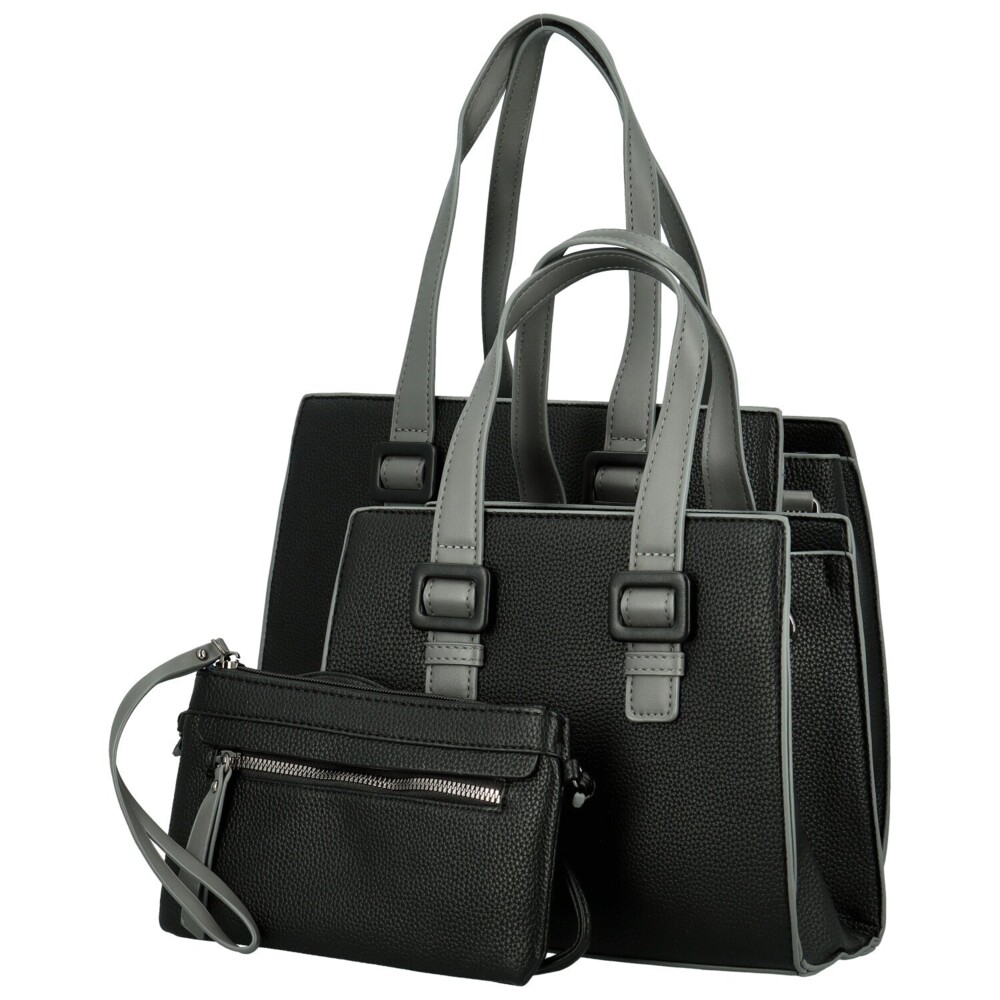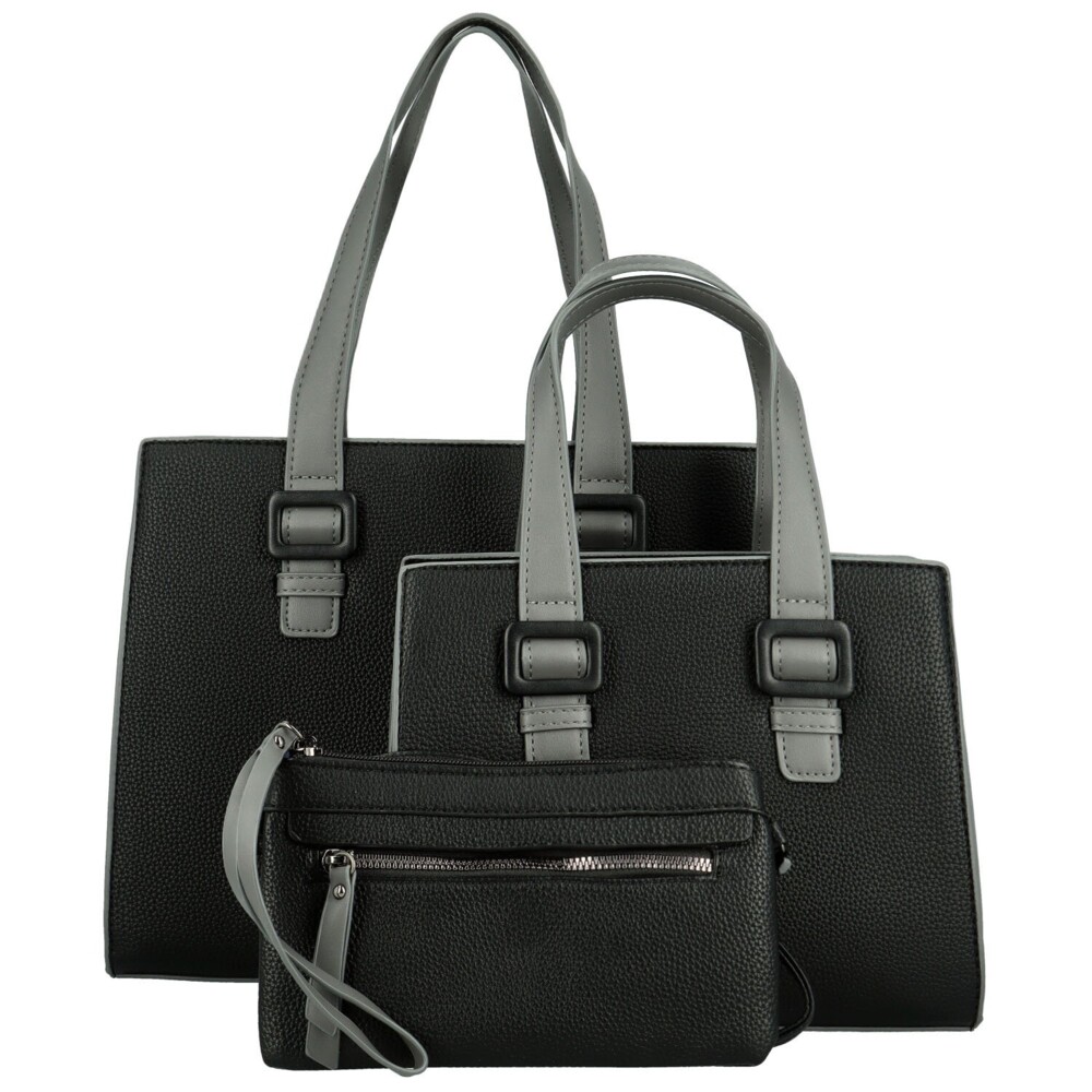 Stylový set tří dámských kabelek v elegantní kombinaci dvou barevných odstínů představuje ideální doplněk pro každodenní i volnočasové aktivity. Každá kabelka v setu má jinou velikost, takže si snadno vyberete podle příležitosti. Velká i střední kabelka má hlavní kapsu na zip a uvnitř kapsičky v podšívce. Na zadní straně nechybí zipová kapsa. Větší taška má delší uši na rameno, menší zase akorát do ruky. Ke kabelkám je i dlouhý popruh na připnutí pro nošení na rameni či do kříže. Stříbrné kování dodává kabelce decentní lesk a elegantní nádech. Malá crossbody kabelka je lehká a využijete ji na cestování, procházky či večerní vycházky. Má hlavní kapsu na zip, přední zipovou kapsičku a dlouhý koženkový popruh. Tento set spojuje praktickou funkčnost a moderní design. Objednejte ještě dnes a vyzkoušejte, vrátit ji můžete až do 30 dnů!