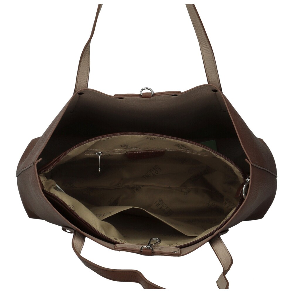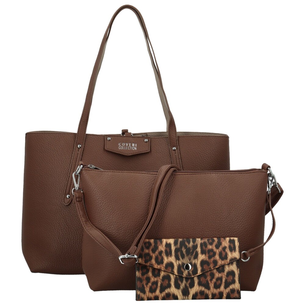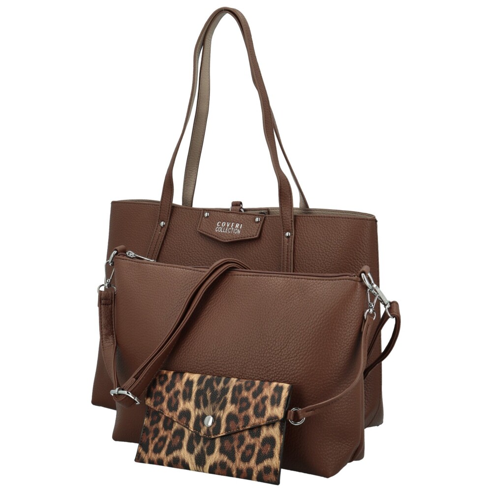 Tento elegantní set kabelek z koženky spojuje praktičnost a styl do jednoho promyšleného celku. Hlavní kabelka je prostorná a navržená pro pohodlné nošení na rameni díky dlouhým pevným uchům. Zavírání na karabinku dodává moderní vzhled a zároveň snadnou manipulaci. Přední stranu zdobí logo značky. Druhá kabelka v setu je praktická crossbody s dlouhým nastavitelným popruhem, kterou můžete nosit samostatně nebo ji využít jako organizér do větší kabelky. Vnitřní část je vybavena kapsičkami v podšívce. Součástí setu je i malá kapsička s výrazným leopardím vzorem a zapínáním na druk, ideální na mince či drobné cennosti. Celek doplňuje elegantní stříbrné kování, které sjednocuje jednotlivé kousky a dodává jim moderní nádech. Tento set je skvělou volbou pro ženy, které chtějí mít po ruce variabilní doplněk vhodný pro různé příležitosti. Objednejte ještě dnes a vyzkoušejte, vrátit jej můžete až do 30 dnů!