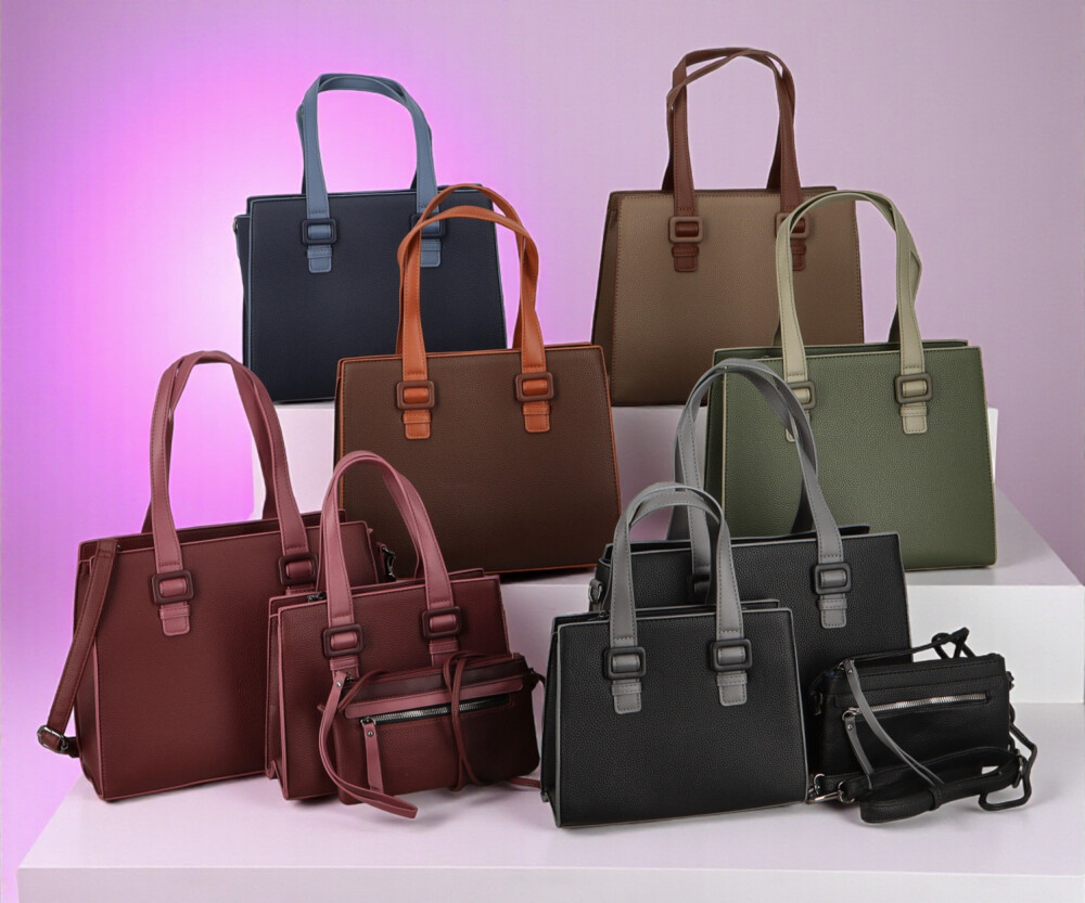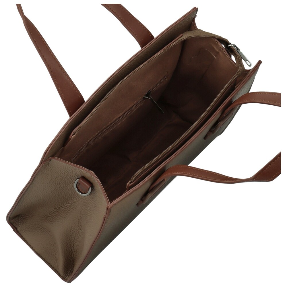 Stylový set tří dámských kabelek v elegantní kombinaci dvou barevných odstínů představuje ideální doplněk pro každodenní i volnočasové aktivity. Každá kabelka v setu má jinou velikost, takže si snadno vyberete podle příležitosti. Velká i střední kabelka má hlavní kapsu na zip a uvnitř kapsičky v podšívce. Na zadní straně nechybí zipová kapsa. Větší taška má delší uši na rameno, menší zase akorát do ruky. Ke kabelkám je i dlouhý popruh na připnutí pro nošení na rameni či do kříže. Stříbrné kování dodává kabelce decentní lesk a elegantní nádech. Malá crossbody kabelka je lehká a využijete ji na cestování, procházky či večerní vycházky. Má hlavní kapsu na zip, přední zipovou kapsičku a dlouhý koženkový popruh. Tento set spojuje praktickou funkčnost a moderní design. Objednejte ještě dnes a vyzkoušejte, vrátit ji můžete až do 30 dnů!