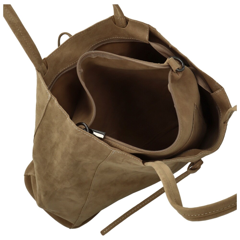 Stylový set kabelek, který promění každodenní nošení ve hru elegance a praktičnost! Velká kabelka obdélníkového tvaru s dlouhými tenkými uchy nabízí prostorný hlavní prostor uzavíratelný zipem i šňůrkami, bezpečně a přitom v moderním stylu. Menší crossbody kabelka v identickém semišovém vzhledu je připravena stát se vaším organizérem nebo samostatnou kabelkou, s praktickou zipovou kapsou, drobnými přihrádkami v podšívce a přední otevřenou kapsou pro rychlý přístup. Tmavě stříbrné kování dodávají jemný, luxusní akcent a podtrhuje moderní charakter celého setu. Objednejte ještě dnes a vyzkoušejte, vrátit ji můžete až do 30 dnů!