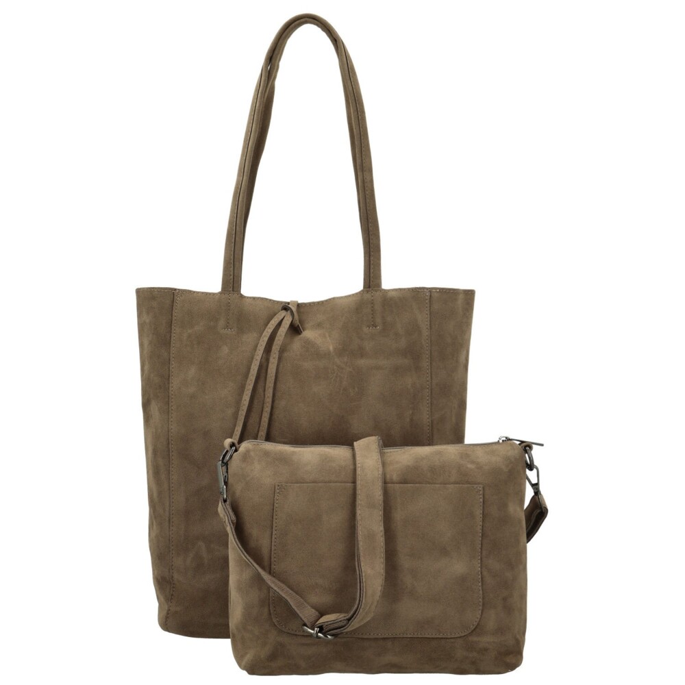 Stylový set kabelek, který promění každodenní nošení ve hru elegance a praktičnost! Velká kabelka obdélníkového tvaru s dlouhými tenkými uchy nabízí prostorný hlavní prostor uzavíratelný zipem i šňůrkami, bezpečně a přitom v moderním stylu. Menší crossbody kabelka v identickém semišovém vzhledu je připravena stát se vaším organizérem nebo samostatnou kabelkou, s praktickou zipovou kapsou, drobnými přihrádkami v podšívce a přední otevřenou kapsou pro rychlý přístup. Tmavě stříbrné kování dodávají jemný, luxusní akcent a podtrhuje moderní charakter celého setu. Objednejte ještě dnes a vyzkoušejte, vrátit ji můžete až do 30 dnů!