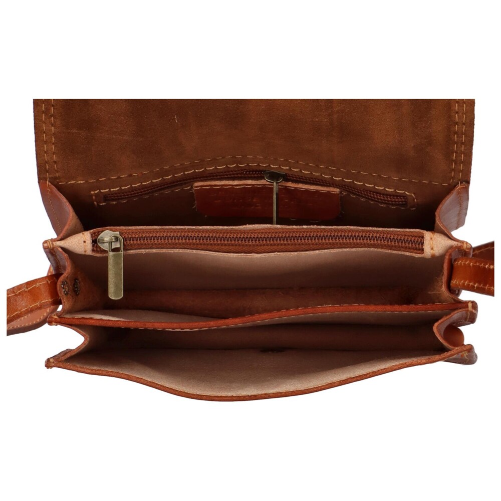 Dámská kožená crossbody koňaková - Delami Vera Pelle Asppena