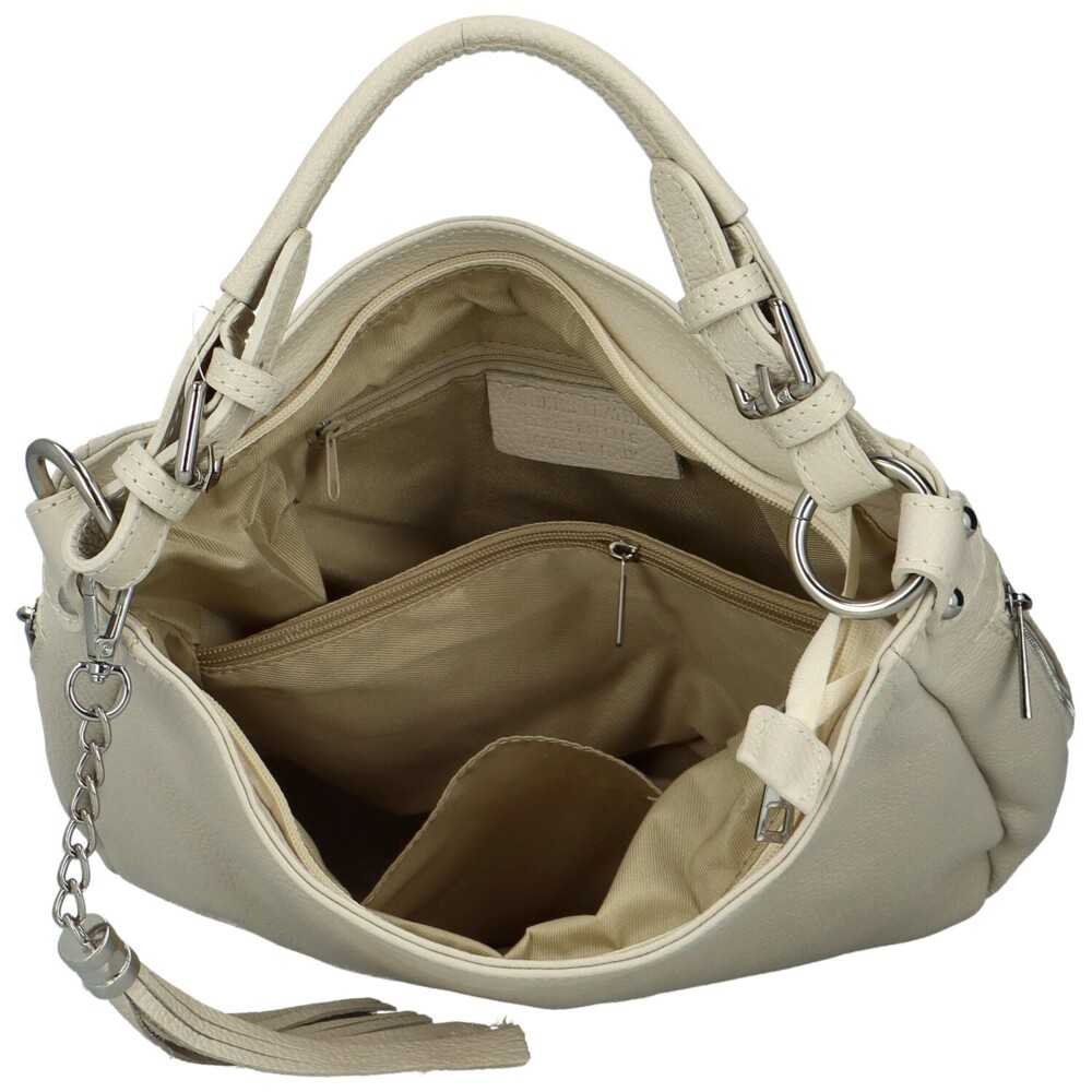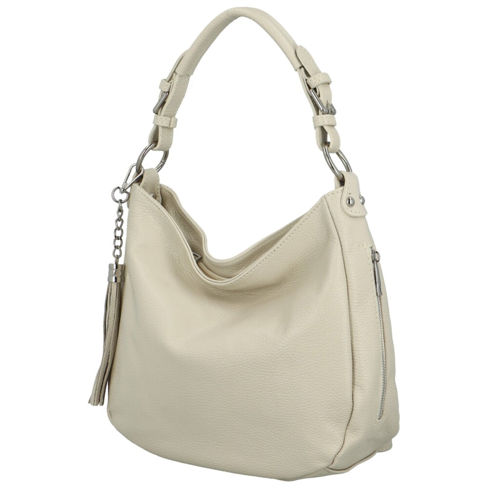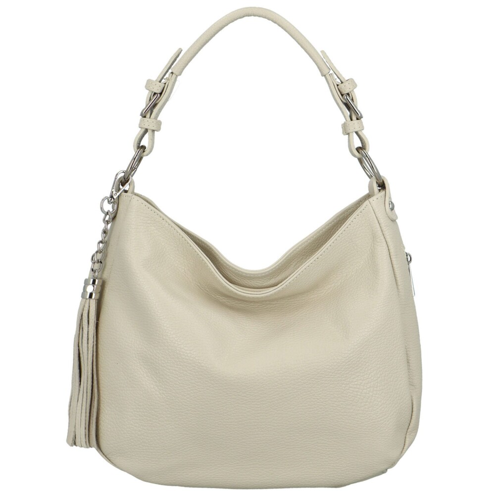 Dámská kožená kabelka přes rameno krémová - Delami Fineska