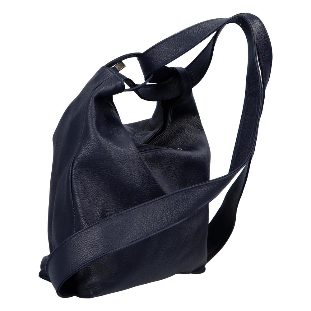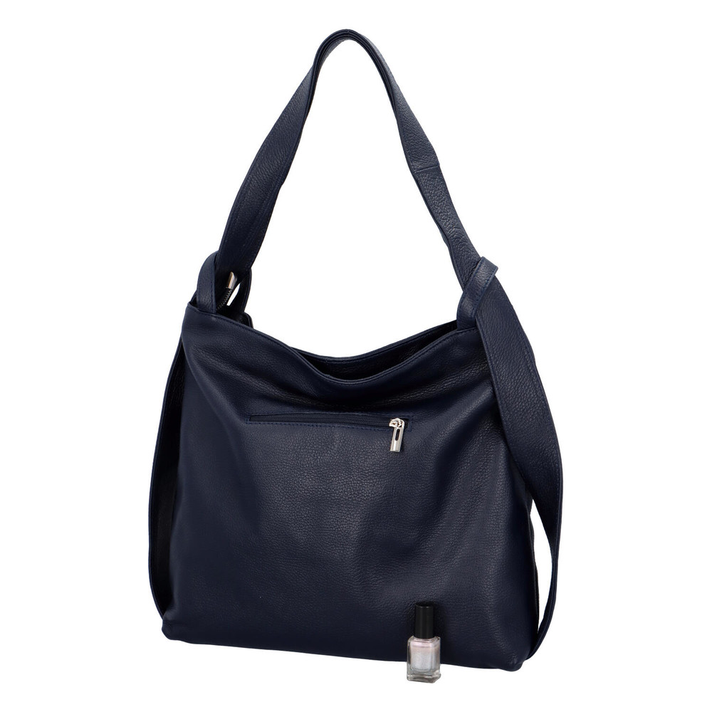 Už znáte kožené produkty značky ItalY? Skvělé kvalitní zboží, které máte nyní na dosah ruky. Objednejte ještě dnes a vyzkoušejte, vrátit ji můžete až za 30 dnů! Velká elegantní kabelka přes rameno je jednou z módních krásek, které Vám můžeme nabídnout. Má tmavě modrou barvu, je měkká a její vzor je vrásčitý. Uši kabelky jsou spojeny s kabelkou, jakoby do popruhů, nosit ji můžete i jako batoh. Hlavní prostor kabelky se otevírá zipem, dělí se látkovou kapsou se zipem na dvě úložiště. Každá věc tak má svoje místo. Telefon a drobnosti si uložíte do dvou volných kapsiček nebo kapsičky se zipem. I na zadní straně kabelky je kapsa se zipem.