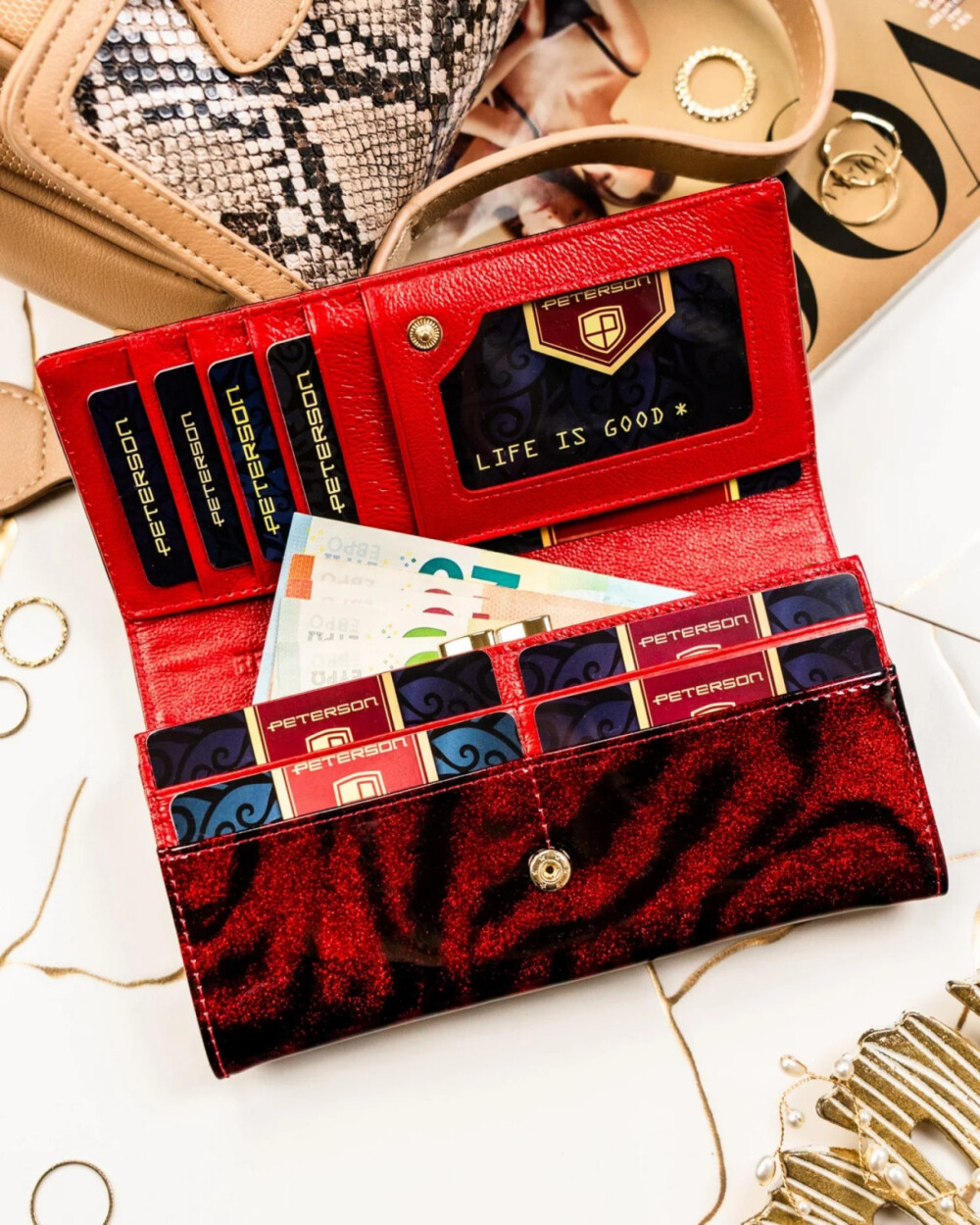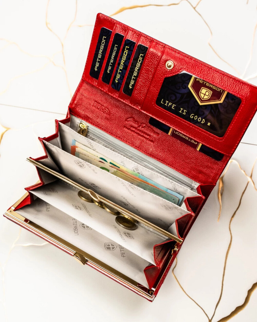 Dámská kožená peněženka červená - Peterson Kiet Peterson Dámská kožená peněženka červená - Peterson Kiet Velká dámská peněženka značky Peterson z kombinace pravé kůže a kvalitní koženky je elegantním i praktickým doplňkem. 1012580 879.00