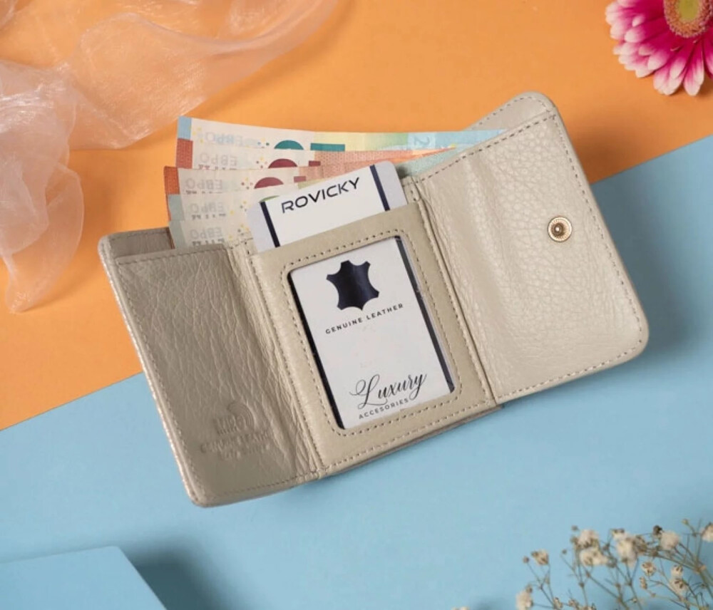 Malá kožená peněženka, která zaujme. Objevte dokonalou rovnováhu elegance a funkčnosti s touto mini kráskou. Na přední klopě jemně zaznívá logo značky, zatímco uvnitř se skrývá prostor pro karty a papírové peníze, s RFID ochranou pro klid v každé situaci. Zadní část s kovovým rámečkem bezpečně uschová vaše mince. Celý klenot je připravený k darování v elegantní krabičce. Malá peněženka, velký dojem. Objednejte ještě dnes a vyzkoušejte, vrátit ji můžete až za 30 dnů!