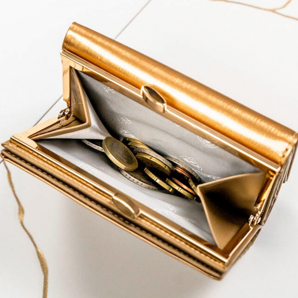 Malá kožená peněženka ve zlatém lesku, stylová drobnost, která ukrývá velké možnosti. Na přední klopě jemně zaznívá logo značky, zatímco uvnitř se skrývá prostor pro karty a papírové peníze, s RFID ochranou pro klid v každé situaci. Střední část s kovovým rámečkem bezpečně uchová mince a zadní strana nabízí praktickou kapsu na druk pro rychlý přístup k dalším kartám. Celý klenot je připravený k darování v elegantní dárkové krabičce, malá peněženka, velký dojem. Objednejte ještě dnes a vyzkoušejte, vrátit ji můžete do 30ti dnů.