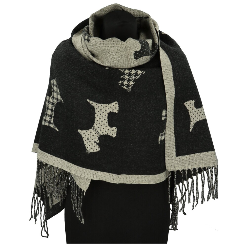 Elegantní šála z jemného kašmíru s příměsí hedvábí potěší nejen milovnice originality. Zdobí ji opakující se motiv psa, který dodává doplňku hravý, ale zároveň sofistikovaný vzhled. Díky oboustrannému provedení můžete snadno měnit styl. Jedna strana má tmavší základ se světlým vzorem, druhá naopak působí světle a jemně. Třásně na koncích podtrhují její lehkost a nadčasový šarm. Ideální pro doladění outfitu i jako stylový dárek pro milovnice zvířat. Objednejte ještě dnes a vyzkoušejte, vrátit ji můžete až do 30 dnů!