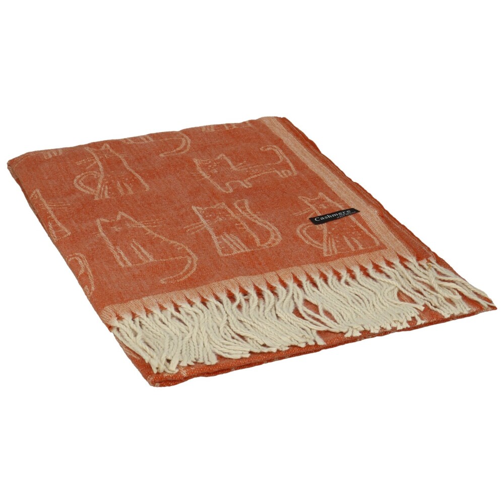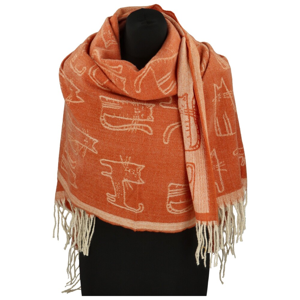 Roztomilá oboustranná šála z kašmíru s příměsí akrylu potěší všechny milovnice koček i originálních doplňků. Po celé šále ji zdobí hravý motiv koček. Z jedné strany vyniká tmavý podklad se světlými siluetami, z druhé se barvy obrátí a vzniká jemnější, svěží efekt. Bílé třásně na koncích krásně kontrastují s barvami šály a dodávají jí lehkost i šmrnc. Měkká, hebká a hřejivá, ideální společník do chladných dnů s nádechem hravé elegance. Objednejte ještě dnes a vyzkoušejte, vrátit ji můžete až do 30 dnů!