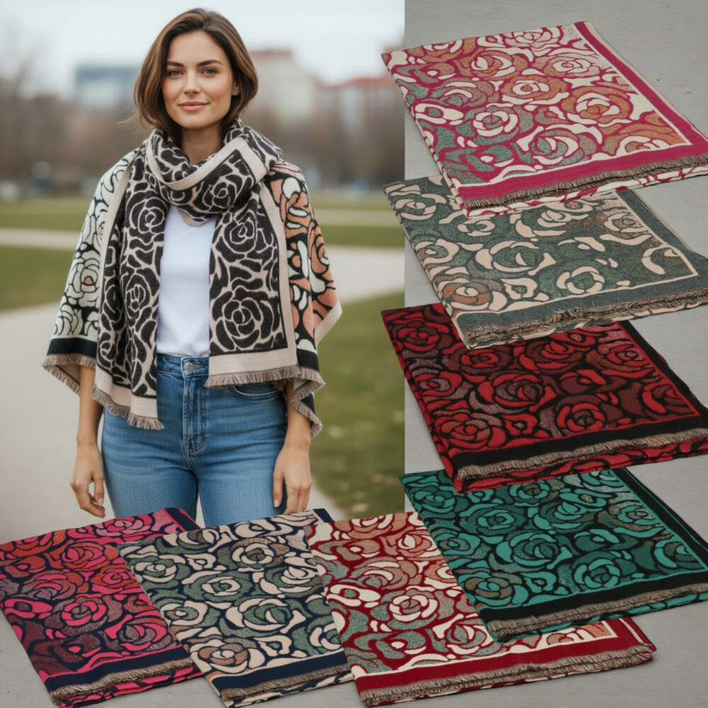 Stylová oboustranná šála s květinovým vzorem přináší dokonalou kombinaci elegance a pohodlí. Z jedné strany působí výrazněji díky tmavému podkladu, z druhé září světlejšími a barevnějšími tóny, můžete ji tak nosit pokaždé jinak. Směs vlny a akrylu zaručuje měkkost, hřejivost i dlouhou životnost. Krátké třásně na okrajích dodávají šále jemný a ženský dotek. Ideální doplněk, který zaujme na první pohled a skvěle doplní kabát i svetr. Objednejte ještě dnes a vyzkoušejte, vrátit ji můžete až do 30 dnů!
