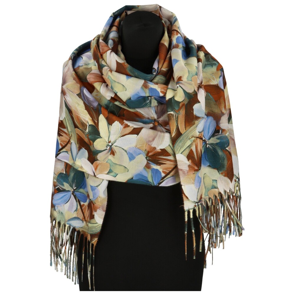 Rozkveťte i v chladných dnech s touto jemnou šálou z kašmíru a hedvábí. Její hravý květinový motiv v záplavě barev připomíná malbu akvarelem, působí svěže, optimisticky a neodolatelně žensky. Díky hebké struktuře a lehkosti materiálu se příjemně nosí a krásně splývá. Konce zdobí jemné třásně, které jí dodávají šmrnc a volnost. Stylový doplněk, který dokáže rozzářit jednoduchý outfit i zachumlat do elegance. Objednejte ještě dnes a vyzkoušejte, vrátit ji můžete až do 30 dnů!