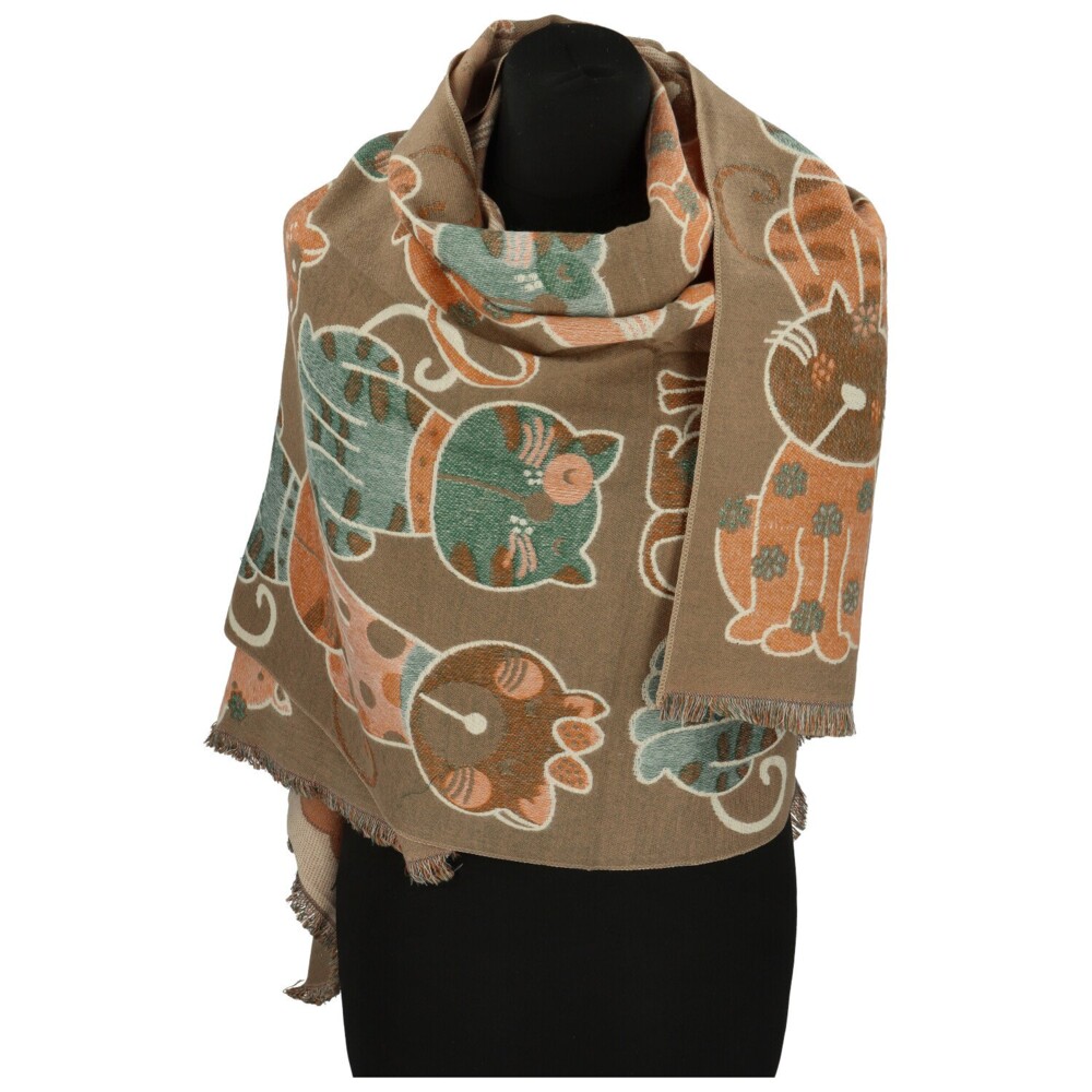 Zachumlejte se do hebkosti a dobré nálady! Tato oboustranná šála z vlny a akrylu je doslova pozvánkou do kočičí říše plné barev a pohody. Z jedné strany ji zdobí veselé kočky na tmavším podkladu, z druhé působí jemněji a světleji. Ideální, když chcete měnit styl podle nálady. Krátké třásně na koncích dodávají šále rozverný dotek. Měkoučká, hřejivá a s dávkou kočičí elegance, dokonalý doplněk pro každou milovnici originality i zvířecího kouzla. Objednejte ještě dnes a vyzkoušejte, vrátit ji můžete až do 30 dnů!