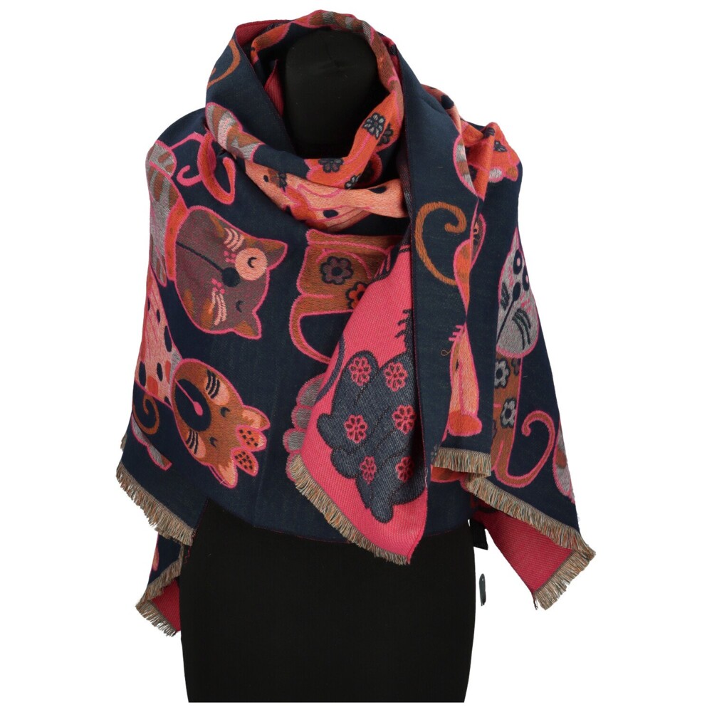Zachumlejte se do hebkosti a dobré nálady! Tato oboustranná šála z vlny a akrylu je doslova pozvánkou do kočičí říše plné barev a pohody. Z jedné strany ji zdobí veselé kočky na tmavším podkladu, z druhé působí jemněji a světleji. Ideální, když chcete měnit styl podle nálady. Krátké třásně na koncích dodávají šále rozverný dotek. Měkoučká, hřejivá a s dávkou kočičí elegance, dokonalý doplněk pro každou milovnici originality i zvířecího kouzla. Objednejte ještě dnes a vyzkoušejte, vrátit ji můžete až do 30 dnů!