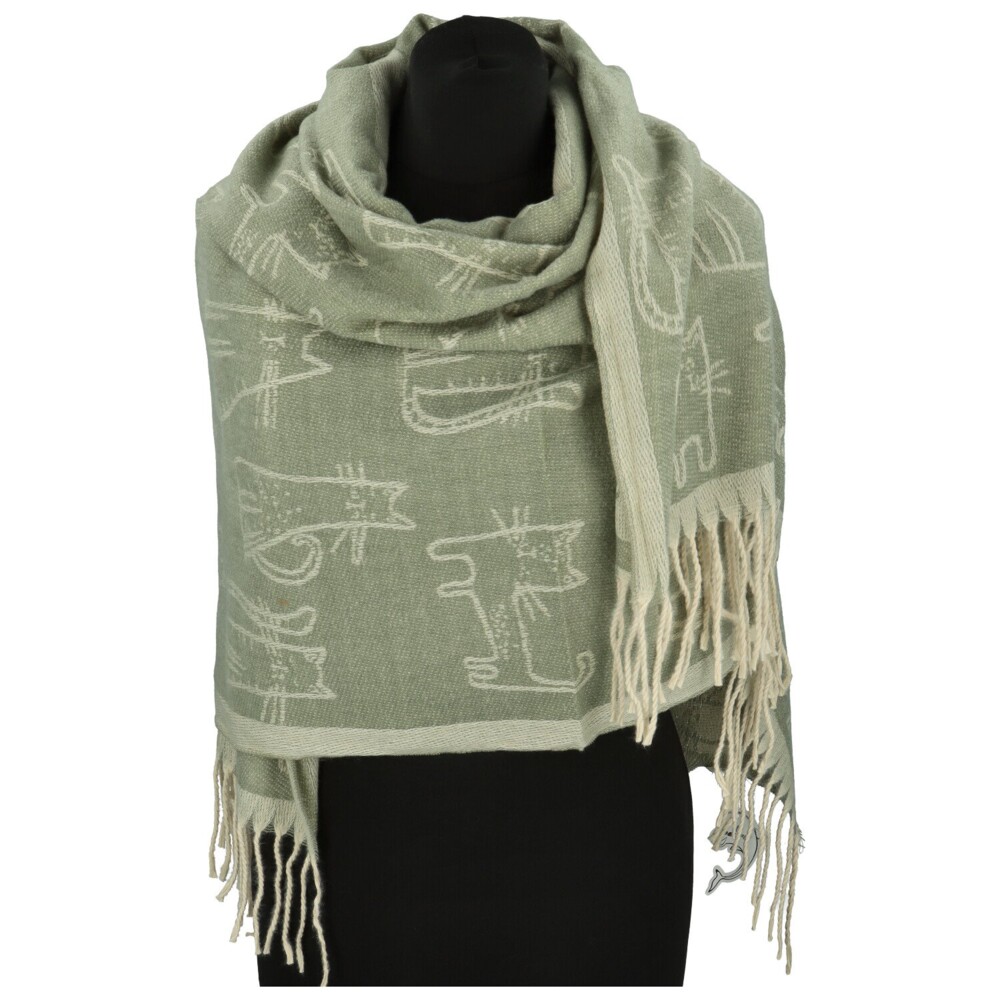 Roztomilá oboustranná šála z kašmíru s příměsí akrylu potěší všechny milovnice koček i originálních doplňků. Po celé šále ji zdobí hravý motiv koček. Z jedné strany vyniká tmavý podklad se světlými siluetami, z druhé se barvy obrátí a vzniká jemnější, svěží efekt. Bílé třásně na koncích krásně kontrastují s barvami šály a dodávají jí lehkost i šmrnc. Měkká, hebká a hřejivá, ideální společník do chladných dnů s nádechem hravé elegance. Objednejte ještě dnes a vyzkoušejte, vrátit ji můžete až do 30 dnů!