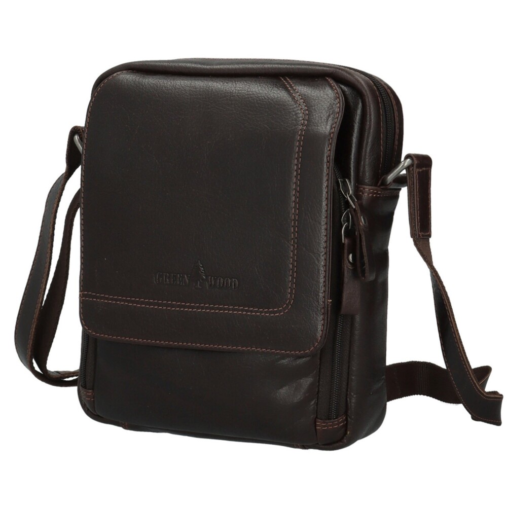 Pánská kožená crossbody taška tmavě hnědá - Greenwood Vaios