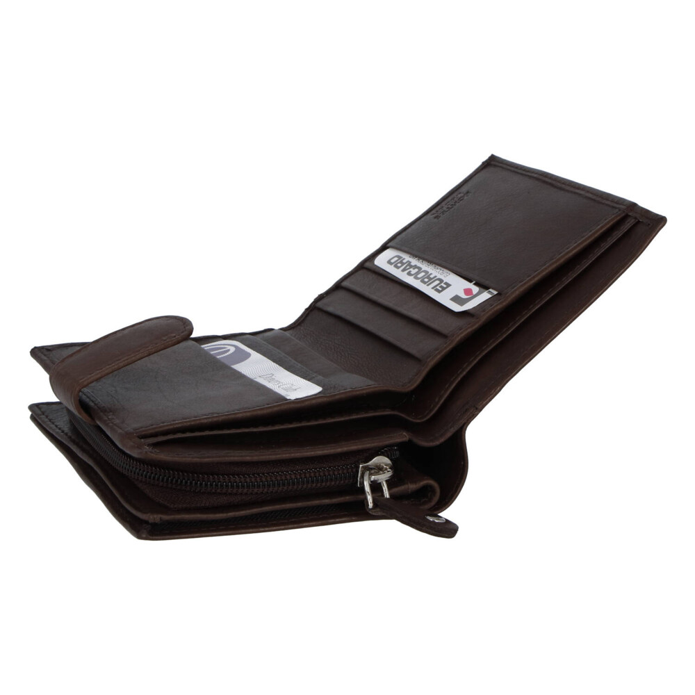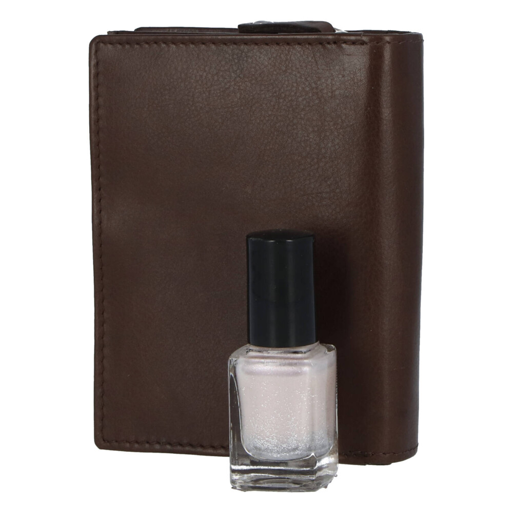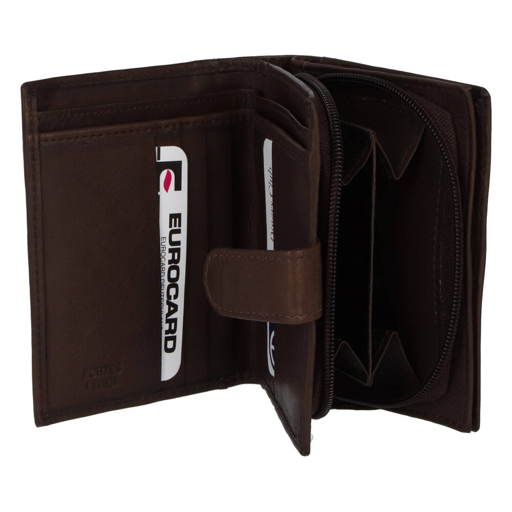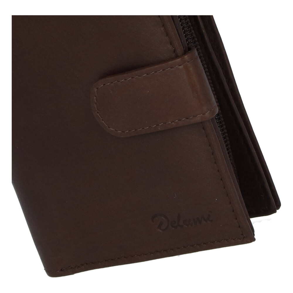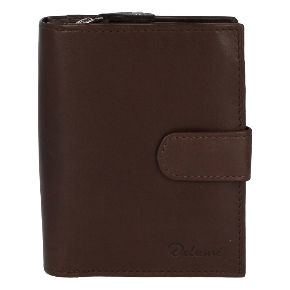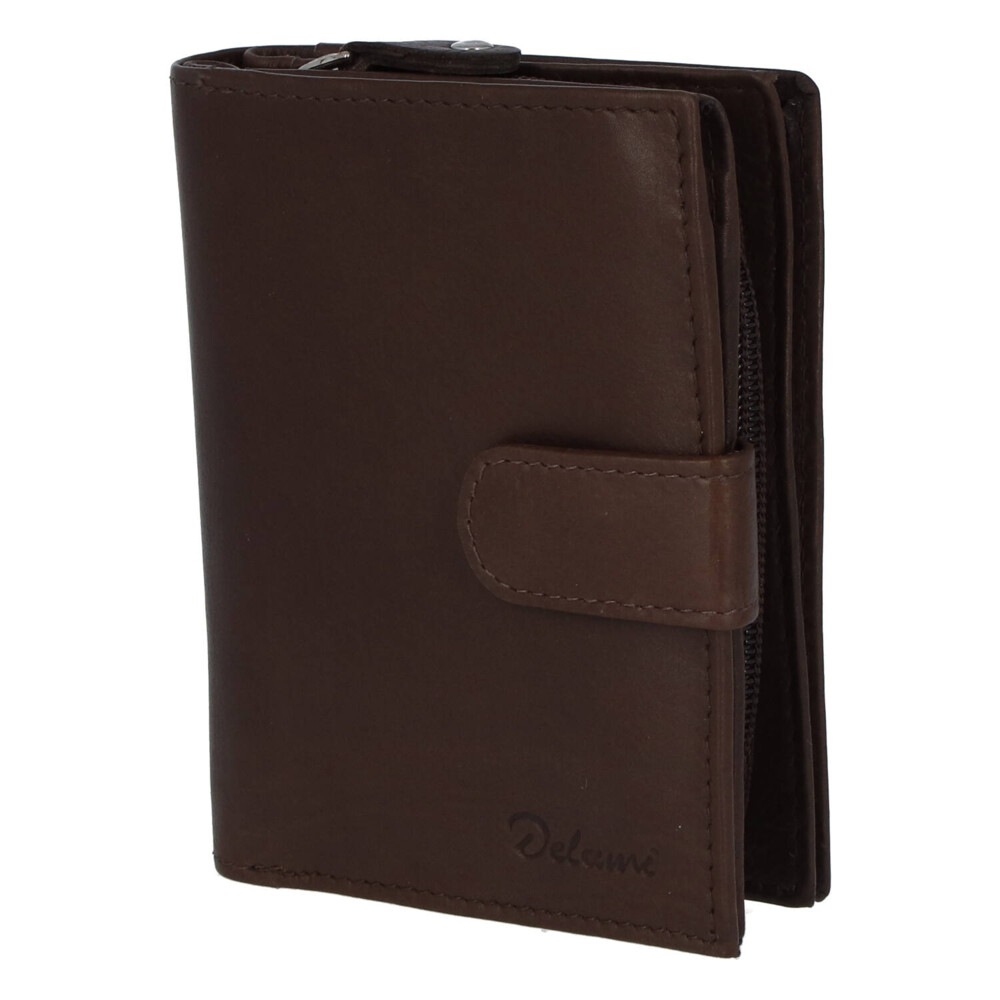 Praktická kožená peněženka Delami ve hnědé barvě je jemná a velmi lehká. Uprostřed naleznete dvě přihrádky na mince, které se zapínají zipem, na přední i zadní straně je zapínání pomocí cvočku, kam uložíte své bankovky, doklady i karty. Nabízí prostor, kvalitu a styl. Objednejte ještě dnes a vyzkoušejte, vrátit ho můžete až za 30 dnů!