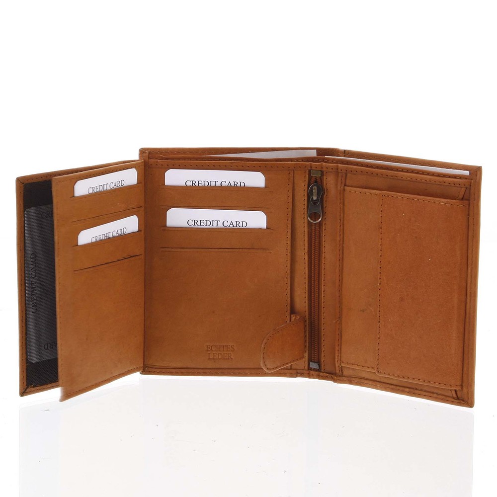 Pánská pevná kožená peněženka koňaková - Diviley Kainat